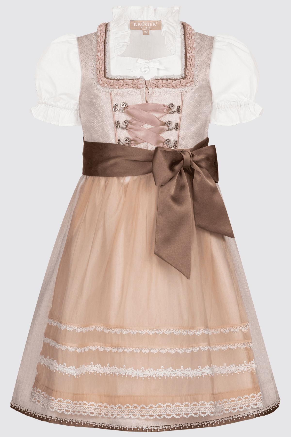 Deine kleine Wiesn-Prinzessin wird dieses wunderschöne Dirndl lieben! Das traditionelle Trachtenkleid im klassischen A-Linien-Schnitt ist perfekt für Oktoberfest, Volksfeste und besondere Anlässe. Mit handgestickten Alpenblumen-Motiven und zierlichen Rüschenborten am Dekolleté sieht es einfach authentisch aus. Die verstellbaren Träger und der elastische Taillenbund ermöglichen eine perfekte Passform und wachsen sogar mit - ideal für Mädchen von 2-16 Jahren! Das Set besteht aus Kleid, Bluse und farbkoordinierter Schürze für den ikonischen Dreiteiler-Look. Aus atmungsaktiven Funktionsstoffen, die auch in vollen Festzelten für ein angenehmes Hautklima sorgen. Robust verarbeitet und knitterarm - perfekt für viele Wiesn-Besuche! Einfach bei 30°C zu waschen.