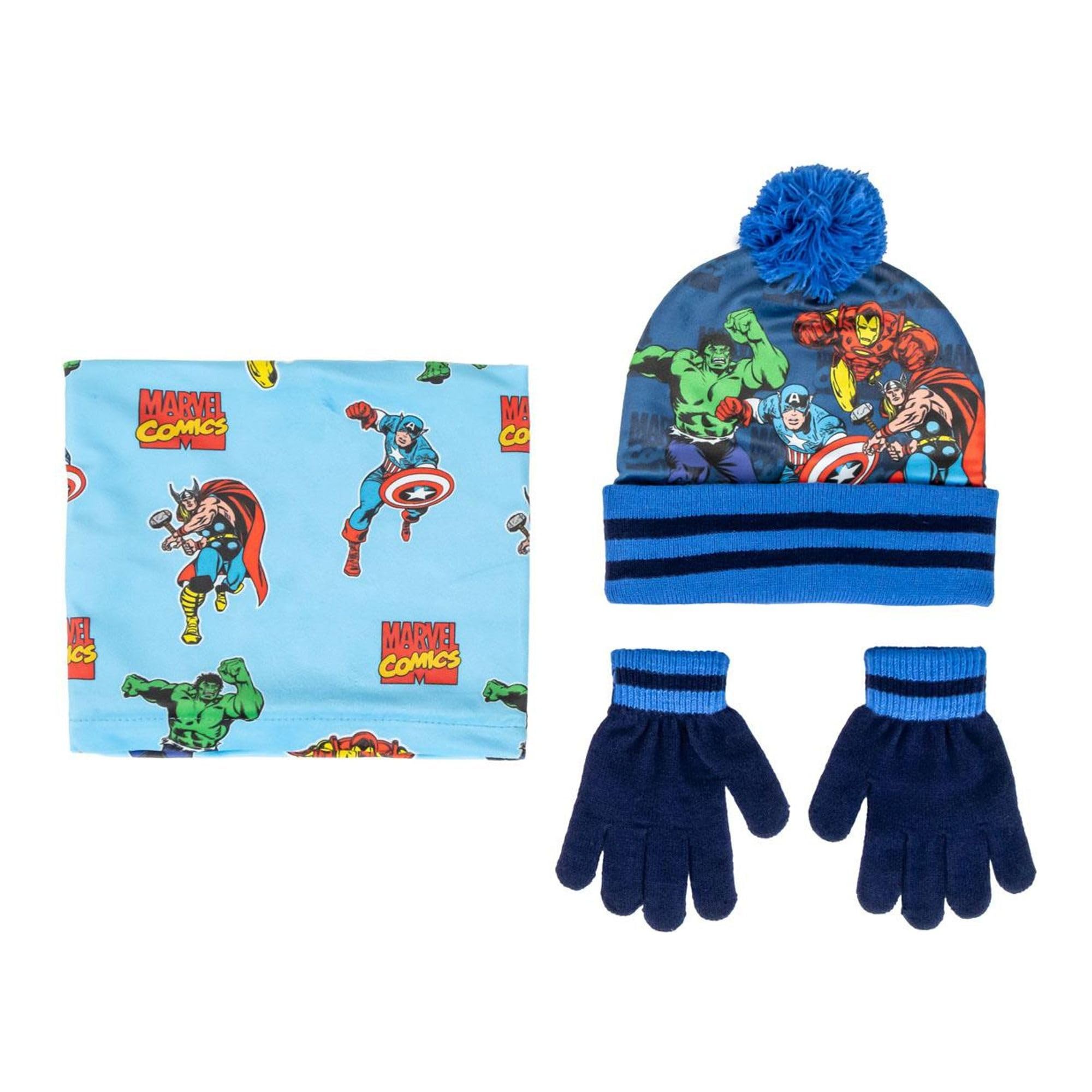 Mach deinen kleinen Superhelden winterfest! Dieses coole 3-teilige Avengers Set besteht aus einer warmen Mütze, einem praktischen Halstuch (Snood) und passenden Handschuhen. In bunten Avengers-Farben mit den Lieblingscharakteren - perfekt für kleine Marvel-Fans von 2 bis 8 Jahren. Das Set hält bei kaltem Wetter schön warm und sieht dabei super stylisch aus. Ideal für den Kindergarten, die Schule, Schneeballschlachten oder winterliche Spaziergänge. Einfach anziehen und schon sind deine Kinder bereit für ihre nächsten Abenteuer - ob als Iron Man, Captain America oder Hulk!