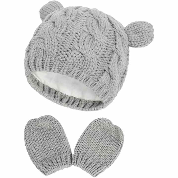 Baby Mütze & Handschuh Set - Strickmütze Mit Ohrenklappen, Baumwollfutter