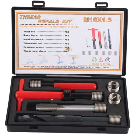 Rette kaputte Gewinde mit diesem professionellen Gewindereparatur-Set von NEO TOOLS! Das 4-teilige Set im Format M6 enthält alles, was du für eine dauerhafte Reparatur benötigst: Gewindeschneider, passenden Bohrer und 4 Reparatur-Einsätze. Aus hochwertigem Chrom-Vanadium-Stahl gefertigt, garantiert das Set maximale Haltbarkeit und Präzision. Ideal für die Werkstatt, die Garage oder den anspruchsvollen Heimwerker. Einfache Anwendung: Altes Gewinde aufbohren, neues Gewinde schneiden, Reparatur-Einsatz einsetzen - schon ist das Gewinde wie neu! Perfekt für die Reparatur von Motorblöcken, Zylinderköpfen oder anderen metallischen Bauteilen. Dieses Set ist ein unverzichtbares Werkzeug für jede professionelle Werkstatt und spart Zeit und Kosten bei der Instandsetzung. Vertraue auf deutsche Qualität und Präzision - mit NEO TOOLS meisterst du jede Gewindereparatur!