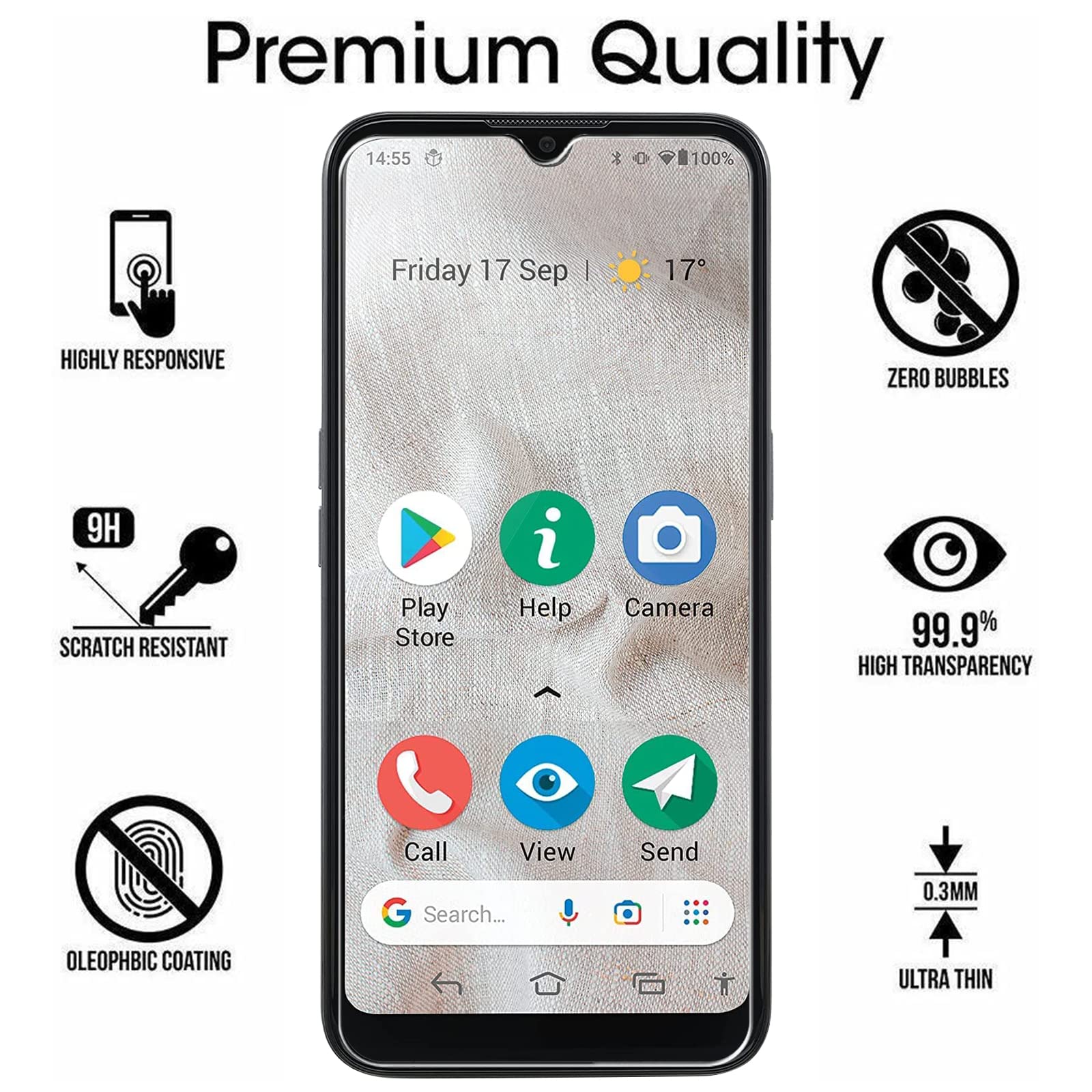Die 0,3 mm dicken Panzerglas-Folien mit 9H Härte schützen deinen Display vor Stürzen und Kratzern, fühlen sich aber trotzdem an wie das Original. Touch-Funktion bleibt natürlich einwandfrei erhalten. Einfach montieren und dein Doro ist für alles gewappnet!