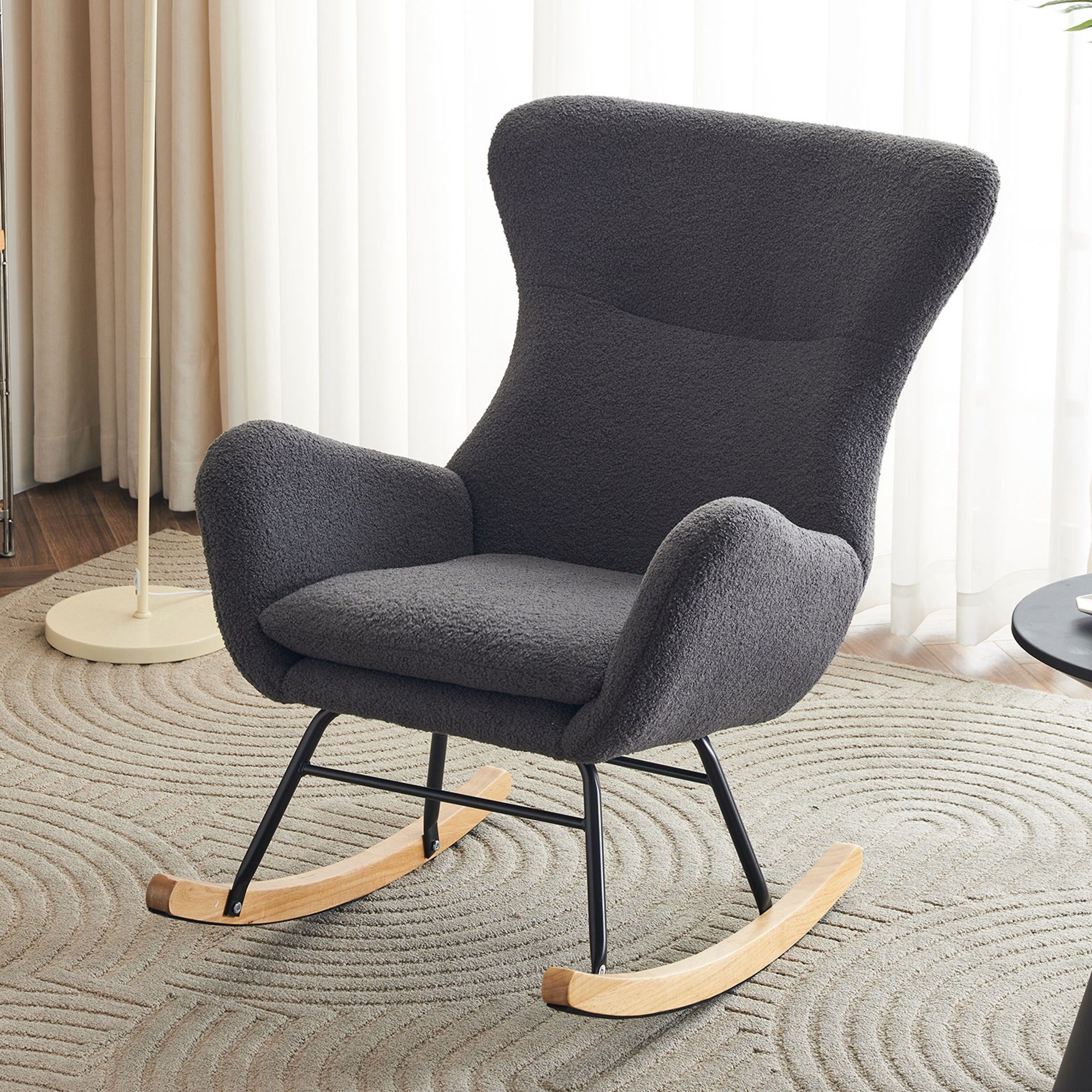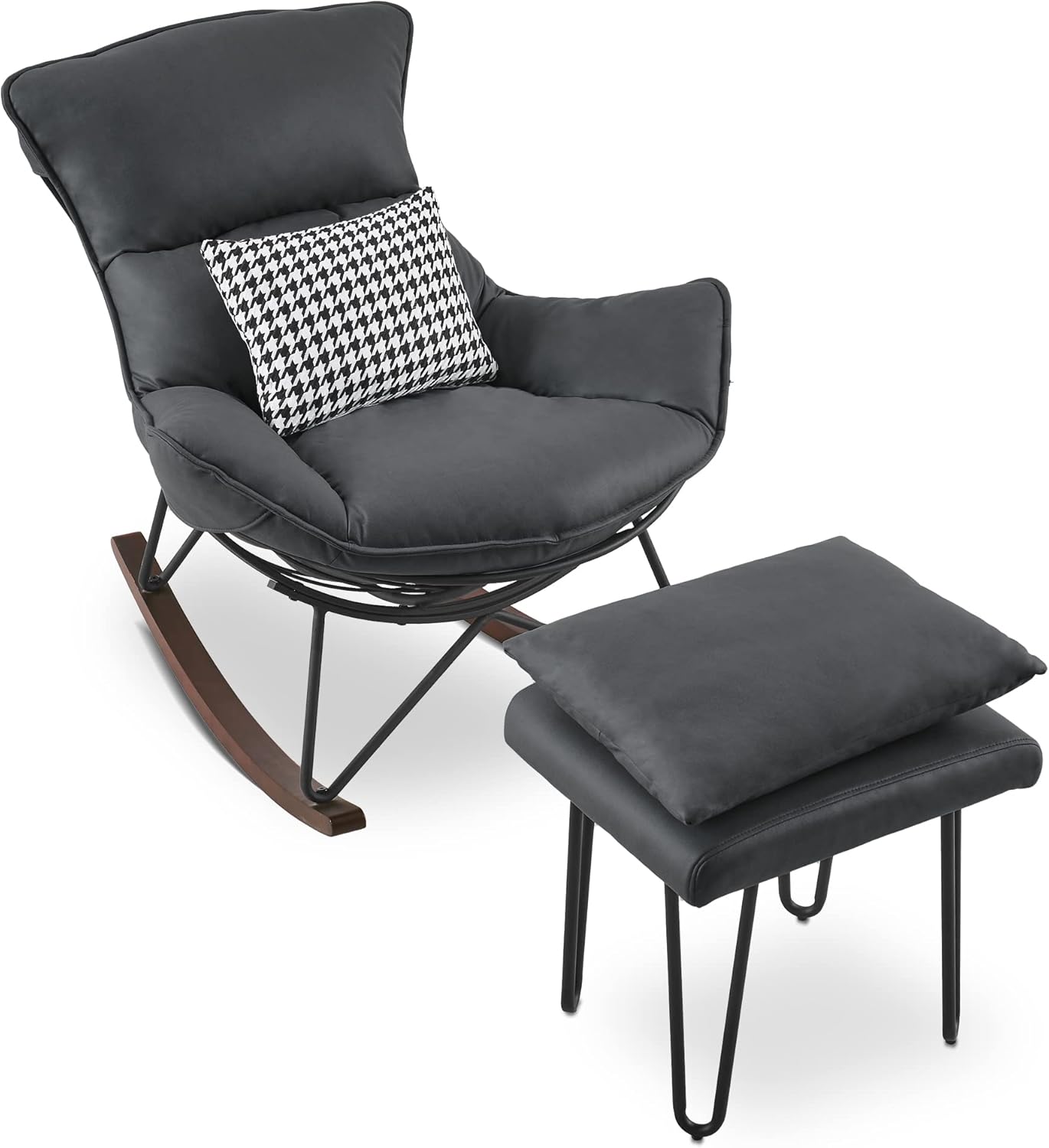 Entspannung pur mit Stil! Dieser wunderschöne Schaukelstuhl von MEUBLE vereint Komfort und elegantes Design in perfekter Harmonie. Bezogen mit weichem, luxuriösem Samtstoff und gepolstert mit hochverdichtetem Schaumstoff für ultimativen Sitzkomfort. Die gebogenen Holz-Kufen mit Filzgleitern sorgen für sanftes, geräuscharmes Schaukeln ohne Bodenkratzer. Mit 65cm hoher Rückenlehne und ergonomisch geformten Armlehnen, die optimalen Halt bieten. Der stabile Metallrahmen und massives Buchenholz tragen bis zu 120kg. Perfekt fürs Wohnzimmer, Schlafzimmer, Büro oder als gemütliche Leseecke. Im trendigen skandinavischen Design passt er zu jedem Einrichtungsstil. Einfache Montage mit bebilderter Anleitung - in kurzer Zeit steht dein neuer Lieblingsplatz bereit. Gönn dir diese Wohlfühloase und genieße entspannte Stunden im sanften Schaukeln!