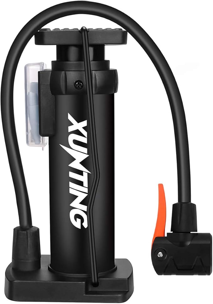 Diese MEXITAL Mini-Pumpe ist dein perfekter Begleiter für unterwegs! Super kompakt und leicht, aber mit voller Power - bis zu 160PSI Druck. Das integrierte Manometer zeigt dir genau an, wie viel Luft im Reifen ist. Passt für ALLE Ventile: Presta, Schrader, Auto - einfach umstellen! Aus Aluminium und robustem Kunststoff, hält was aus. Der 40cm Schlauch ist flexibel und temperaturbeständig. Mit rutschfestem Pedal und klappbarem Ständer - einfach bedienen. Passt nicht nur für Fahrräder, sondern auch für Bälle, Schwimmringe, Luftmatratzen. In der praktischen Tasche verstaut - immer griffbereit!