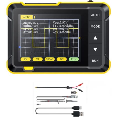 Professionelle Messtechnik für unterwegs! Dieses handliche Digital-Oszilloskop mit 2,5 MHz Abtastrate und 500 kHz Bandbreite passt in jede Werkzeugtasche. Mit klarem 2,4-Zoll TFT Display (320x240 Pixel) siehst du jede Welle perfekt. Einfache AUTO-Funktion, integrierter Akku und vielseitig einsetzbar in Auto-Werkstatt, Ausbildung oder Hobby-Bereich. Messbereich bis ±400V - ideal für alle, die elektronische Signale analysieren müssen. Dein treuer Begleiter für jede Messaufgabe!