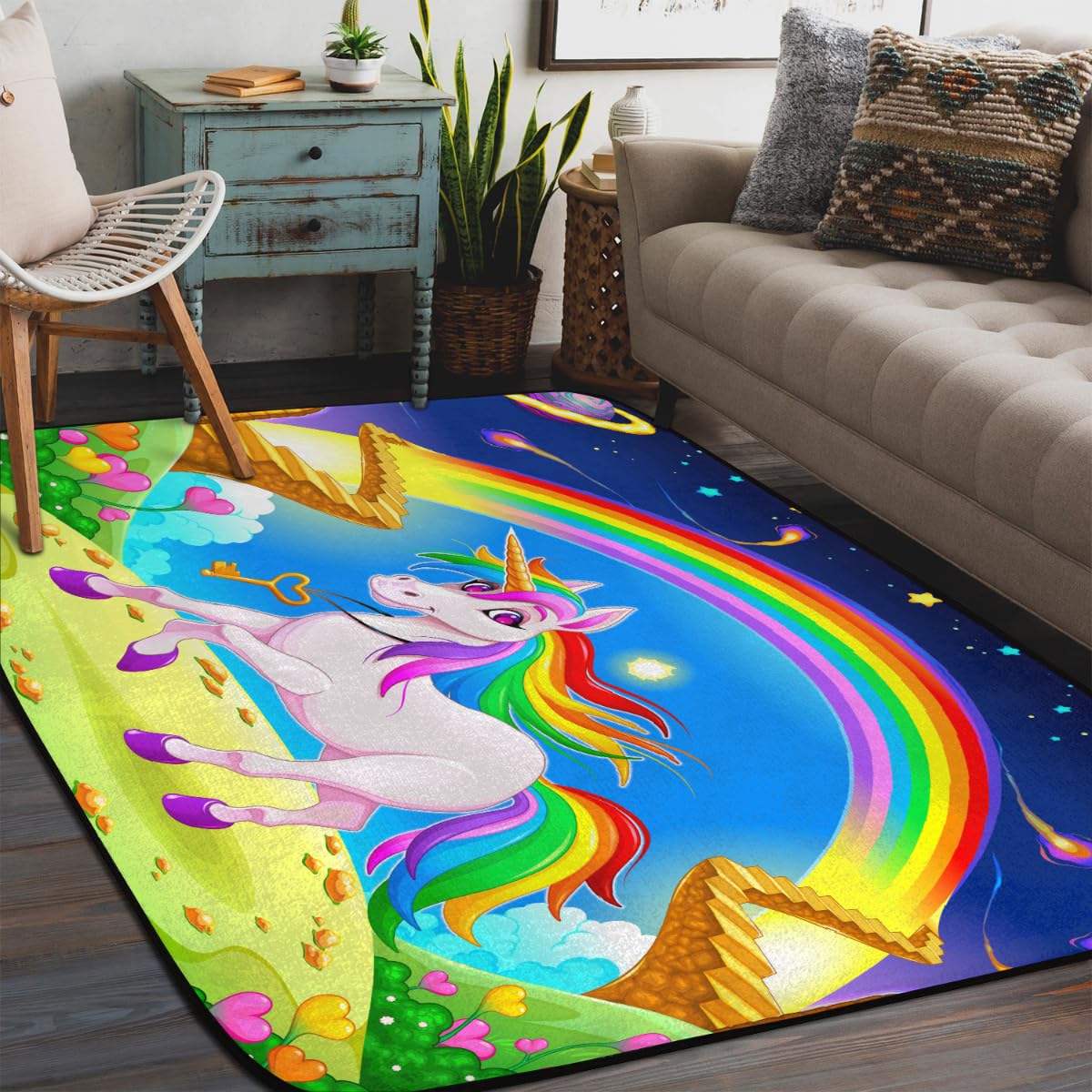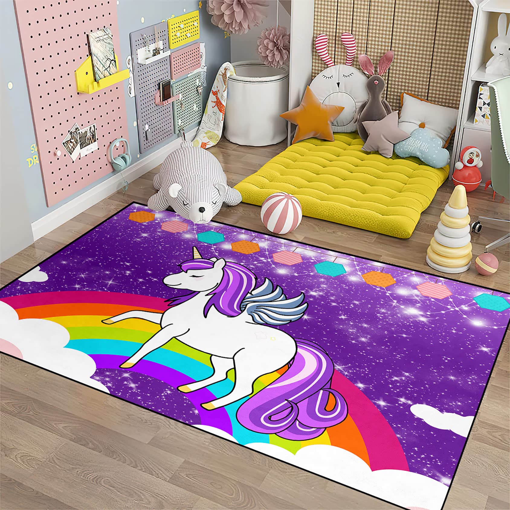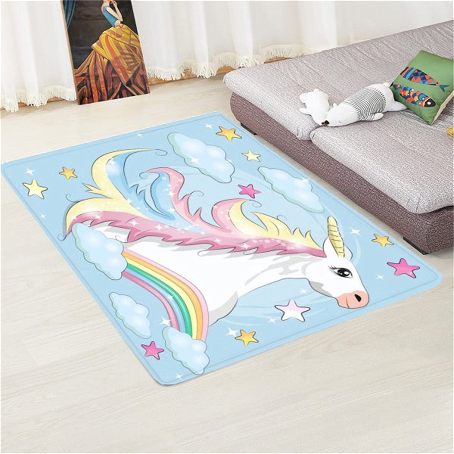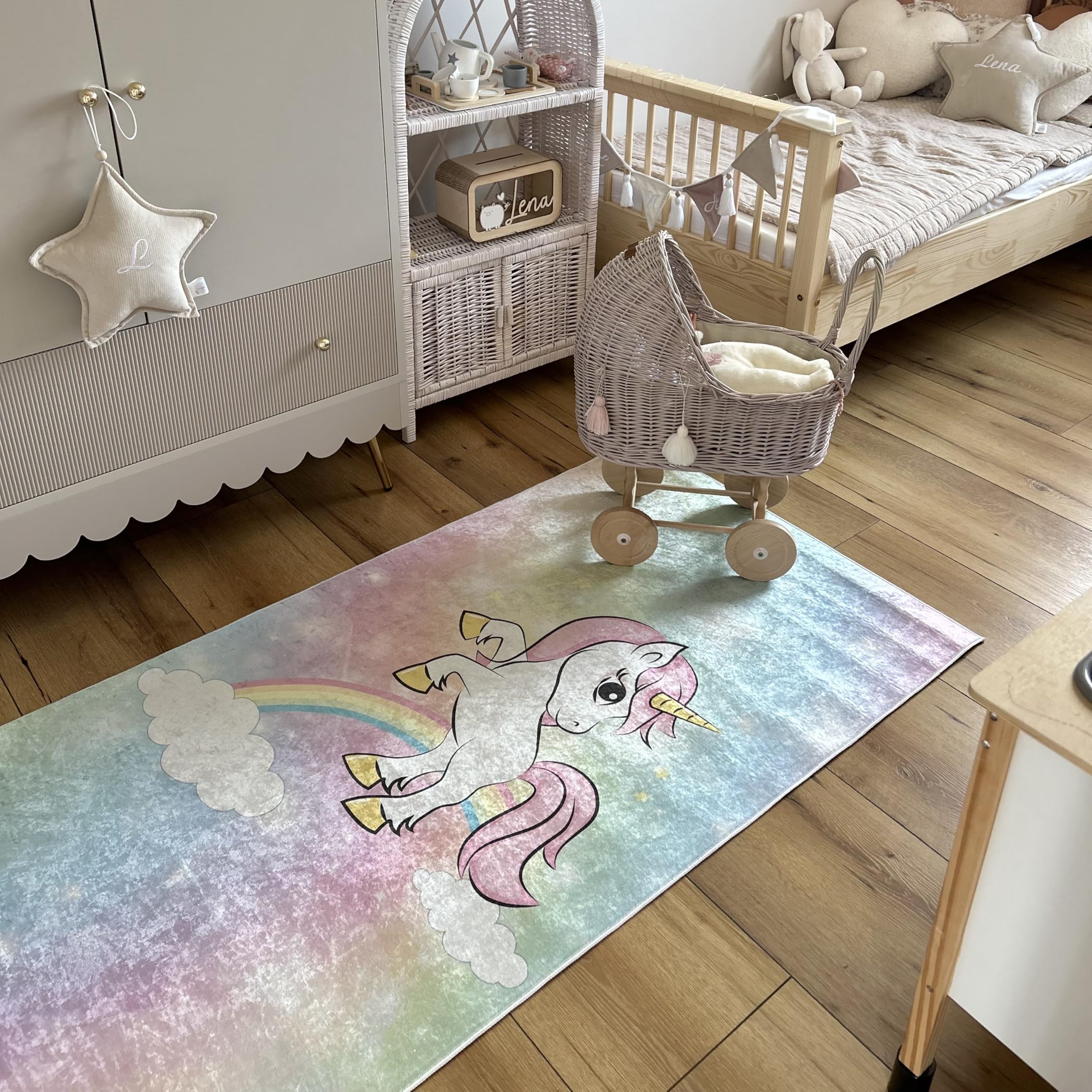Oh wie süß! Der Einhorn Teppich von MMYAOKEN bringt Magie ins Kinderzimmer! Mit 50x80cm perfekt als kleiner Vorleger oder Fußmatte. Super weich und flauschig - da laufen die Kids barfuß total gerne drüber. Und das Beste: Er ist rutschfest! Die Unterseite aus TPR-Material hält super auf Holz- und Fliesenböden. Kein Gefahr des Wegrutschens - wichtig bei kleinen Wirbelwinden! Der Teppich ist aus 100% Polyester, ohne Schadstoffe und geruchsneutral. Perfekt für empfindliche Kinderhaut. Und wenn's mal dreckig wird? Einfach in die Waschmaschine bei 30 Grad - praktisch oder? Trocknen am besten an der Luft oder aufgehängt. Passt super ins Wohnzimmer, Schlafzimmer oder auch in's Spielzimmer. Das Einhorn-Motiv mit Regenbogen ist einfach niedlich und bringt Farbe ins Zimmer. Auch als Geschenk ideal - ob für Kinder, Teenies oder jung gebliebene Erwachsene! Einfach zusammenklappen für platzsparende Lagerung. Übrigens: Funktioniert auch super mit Fußbodenheizung. Einfach mal ausprobieren - der Teppich macht einfach gute Laune!