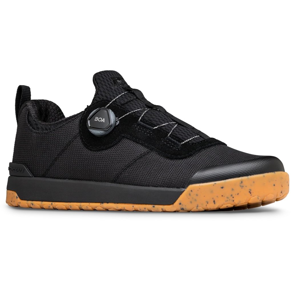 Für alle, die es abseits der Straße wild mögen: Die Ride Concepts Accomplice MTB-Schuhe sind deine perfekten Begleiter auf jeder Trail-Tour! In Größe 43 und in schickem Oliv gehalten, sehen sie nicht nur gut aus, sondern bieten auch maximalen Halt und Komfort. \\n\\nDie Max Grip Gummilaufsohle gibt dir auf den Pedalen bombenfesten Stand - egal wie schlammig oder steil es wird. Die EVA-Einlegesohle mit doppelter Dichte dämpft jeden Stoß und sorgt dafür, dass deine Füße auch nach langen Touren noch fit sind. \\n\\nDas leichte Obermaterial aus Nylon-Tech mit Wildleder-Ösen ist super atmungsaktiv und super bequem. Die elastische Schnürsenkelhalterung hält alles sicher an Ort und Stelle, während die abriebfesten Zonen an Zehen und Innensohlen für extra Langlebigkeit sorgen. \\n\\nDas geniale Feature: Die Four-Way-Stretch-Schlupfzunge hält zuverlässig Schmutz und Steinchen fern - so bleibt dein Fahrspaß ungetrübt. Mit dem internen TPU-Zehenschutz bist du auch gegen unerwartete Steinschläge gewappnet. Echte Trail-Profis eben!