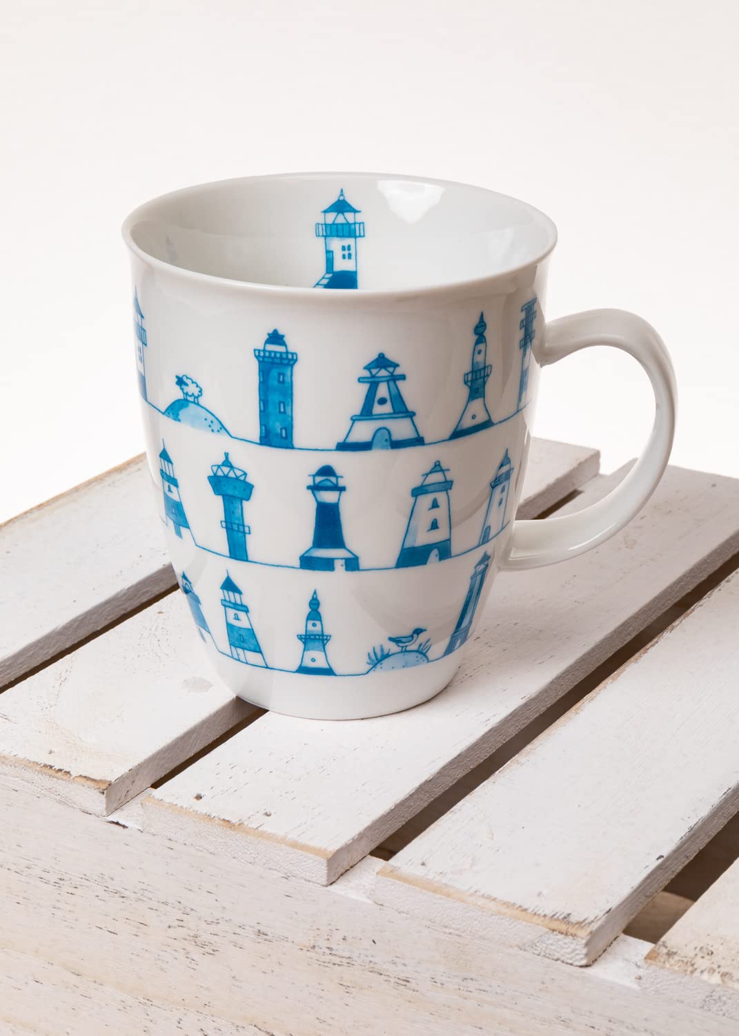 CUP+MUG Porzellan Becher Leuchtturm - Weiß Blau 400ml Spülmaschinenfest