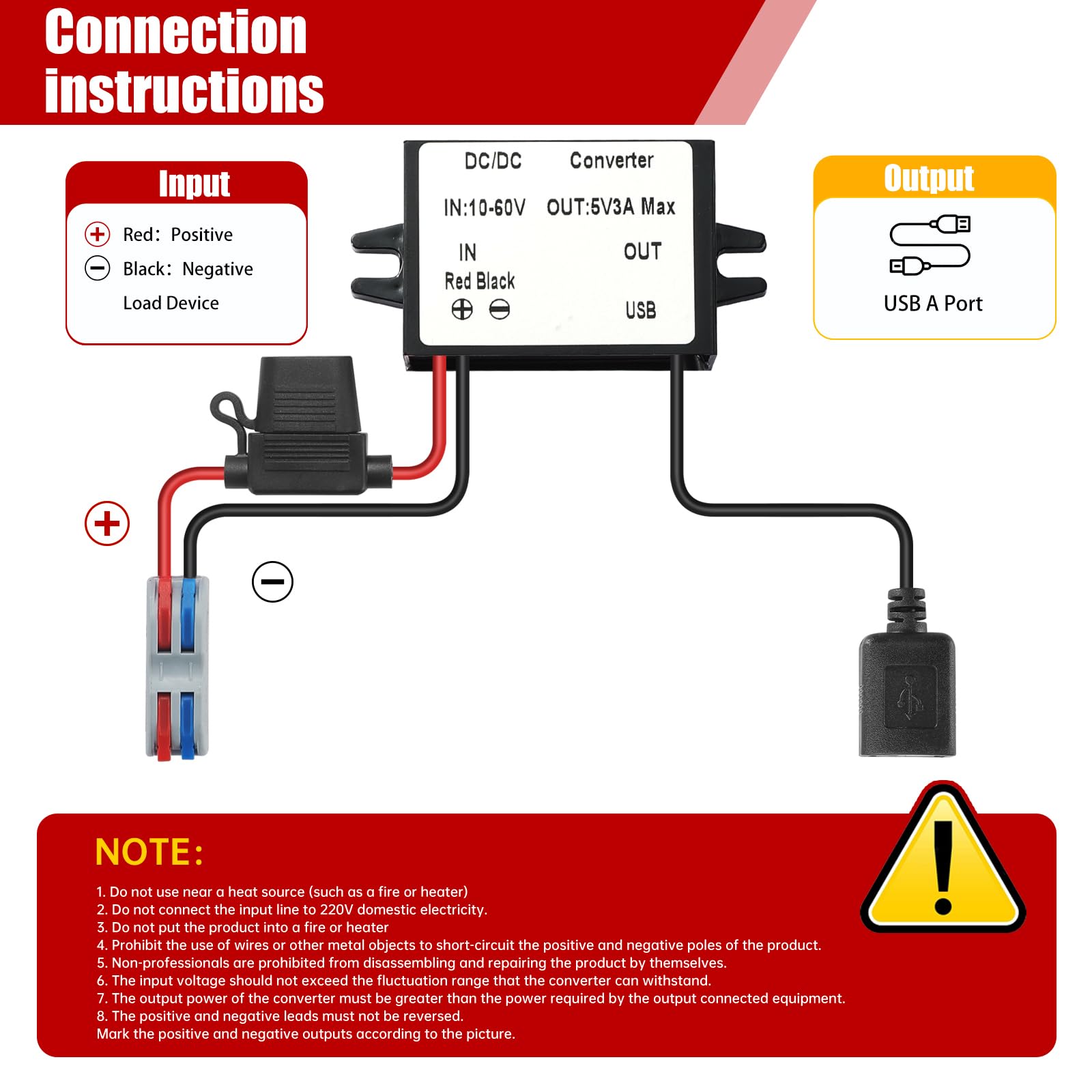 Spannungswandler für (fast) alles! Dieser vielseitige Wandler macht aus 10-60V Gleichspannung stabile 5V/3A USB-Strom - perfekt für Auto, LKW, Boot oder Solaranlagen. Mit IP67 Wasserschutz übersteht er auch mal eine Dusche, und die integrierten Sicherungen schützen vor Überlastung. Die praktischen Hebelmutter-Klemmen machen das Anschließen zum Kinderspiel - einfach Draht rein und festklemmen. Temperaturbereich von -20° bis 65°C? Kein Problem! Ob für Autoradio, Monitor, LED-Beleuchtung oder DIY-Projekte - hier bekommst du zuverlässige 15W Leistung. Einfach, sicher und robust - der ideale Begleiter für alle 12V/24V/36V/48V Anwendungen!