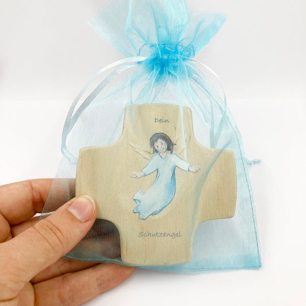 Ein ganz besonderes Geschenk zur Taufe oder Geburt! Dieses wunderschöne Holzkreuz von MaMeMi begleitet deinen kleinen Jungen durchs Leben. Mit dem süßen Schutzengel-Motiv und dem tröstenden Spruch 'Wo ich gehe, wo ich stehe, bist Du, mein Engel, in der Nähe'. In zarten 15 x 9 cm perfekt fürs Kinderzimmer - einfach an die Wand hängen über dem Bett oder Wickeltisch. Kommt sogar mit einem kleinen Gebetsbüchlein! Von Paten, Großeltern oder für die eigene Familie - dieses Kreuz ist eine bleibende Erinnerung an den besonderen Tag. Einfach herzergreifend schön!