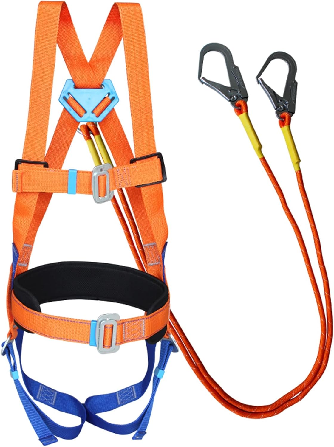 Sicherheit geht vor! Dieser professionelle 5-Punkt Auffanggurt ist dein bester Freund in der Höhe. Aus hochfester Polyesterfaser mit verdickter Lendenwirbelstütze - das bedeutet maximalen Komfort und Sicherheit. Der Gurt ist für bis zu 150kg ausgelegt.