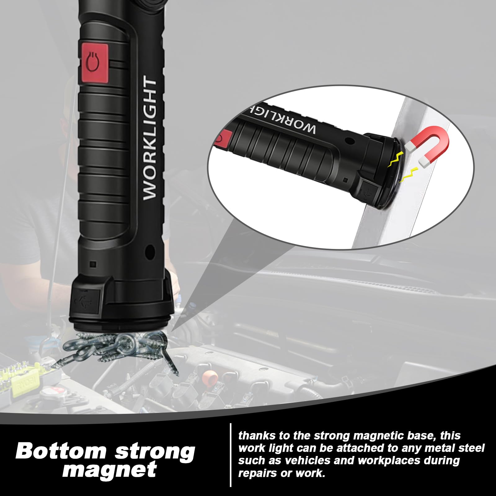 Brauchst du mal richtig gutes Licht bei der Arbeit? Diese LED-Arbeitsleuchten sind echte Alleskönner! Mit starkem Magnetfuß und Haken kannst du sie überall befestigen - an der Motorhaube, im Regal oder am Zelt. Sie sind 360° drehbar und haben 7 verschiedene Lichtmodi, damit du immer die passende Beleuchtung hast. Per USB-C aufladbar halten sie bis zu 6 Stunden durch. Und das Beste: Sie sind wasserdicht (IP54) und super robust. Egal ob in der Werkstatt, beim Camping oder im Notfall - diese Lampe ist immer dabei. Im Set sind zwei Leuchten enthalten, also doppelt so viel Power!