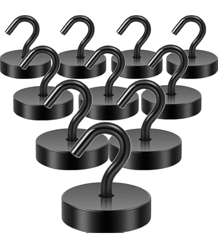 Kleine Haken, riesige Kraft! Diese praktischen Magnethaken von Smart House Tools halten bis zu 34kg - ganz ohne Bohren, Schrauben oder Kleben. Aus starken Neodym-Magneten gefertigt, haften sie sicher auf allen magnetischen Oberflächen wie Kühlschrank, Stahlregalen oder Schränken. Mit den Maßen 32x49mm sind sie kompakt aber dennoch robust genug für schwere Gegenstände. Perfekt für Werkstatt, Küche, Büro oder Garage - ob für Jacken, Taschen, Werkzeuge oder Deko. Einfach an metallischen Oberflächen anbringen und sofort belasten. Die schwarze, vernickelte Oberfläche ist rostfrei und pflegeleicht. Besonders praktisch: Rückstandslos entfernbar und immer wieder verwendbar. Organisiere deinen Raum mühelos und flexibel - ohne Handwerkerkosten oder Dreck. Für alle, die Ordnung lieben aber keine Löcher in der Wand wollen. Einfach anbringen, aufhängen und freuen - so einfach geht Ordnung halten!