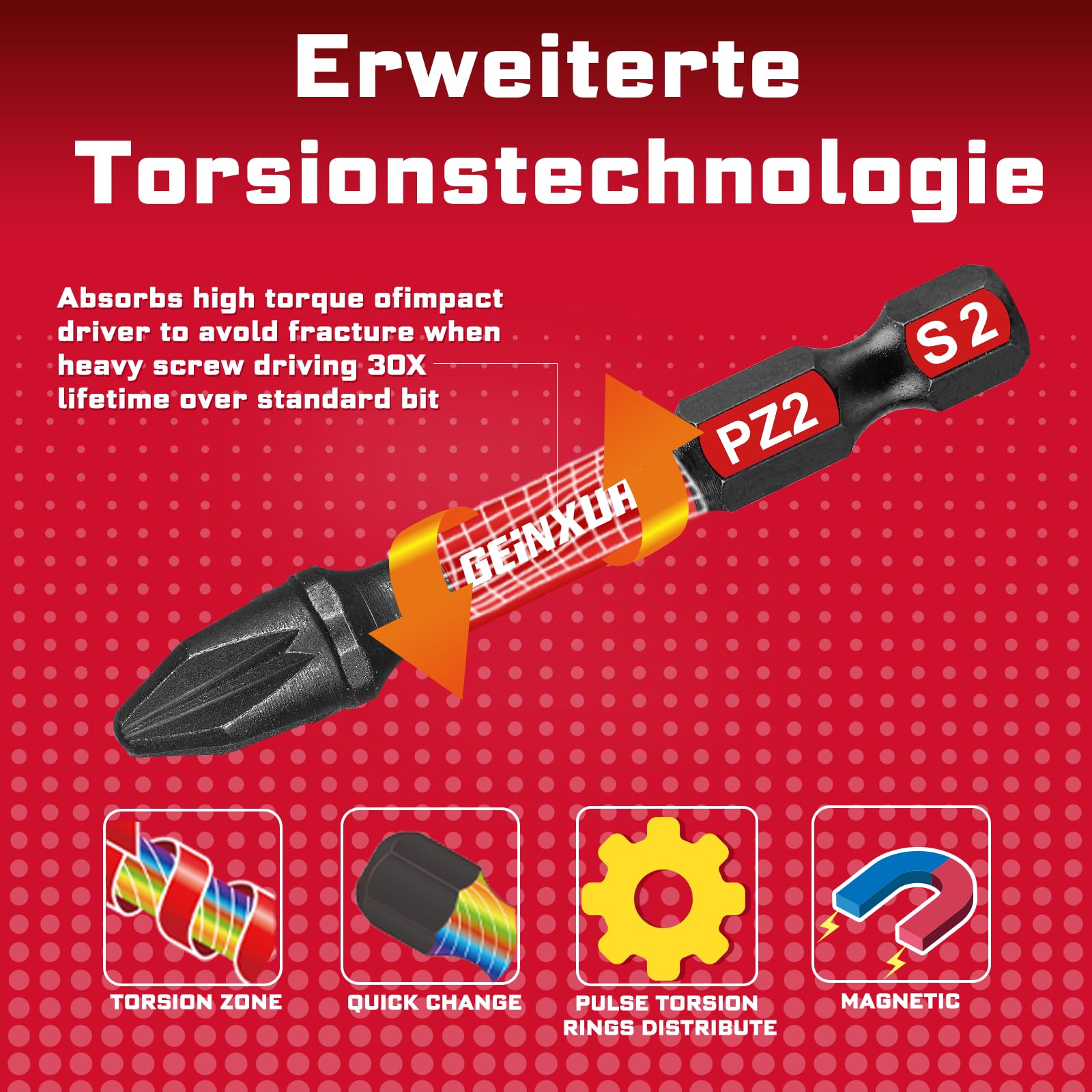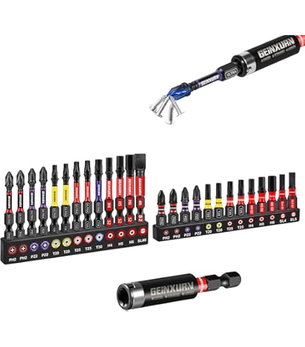 Das komplette Bitset für alle Schraubarbeiten! Mit 33 Teilen hast du immer das passende Bit zur Hand: PH1-3, PZ1-3, Torx T7-T40 und Schlitzbits in verschiedenen Größen. Die 25mm langen Bits aus S2-legiertem Stahl überzeugen durch extreme Härte und Zähigkeit. Der starke Magnet hält Schrauben sicher fest - kein lästiges Abrutschen mehr! Besonders praktisch: Die schlagfeste Ausführung hält sogar Impact-Schraubern stand. Die präzisen Spitzen sorgen für perfekten Sitz in den Schraubenköpfen und reduzieren Cam-Out Effekte. Mit dem 60mm magnetischen Bithalter arbeitest du besonders effizient. Das 1/4 Zoll Sechskant-System passt zu allen gängigen Akkuschraubern, Handschraubern und Maschinen. Die farbige Kennzeichnung jedes Bits ermöglicht schnelles Finden. Die weiche Basis sorgt für komfortables Arbeiten und längere Lebensdauer. Ob Heimwerker oder Profi - dieses Set macht jede Montagearbeit zum Kinderspiel. Perfekt für Möbelaufbau, Fahrradreparaturen oder Handwerksprojekte. Qualität, die sich bei jedem Einsatz beweist!