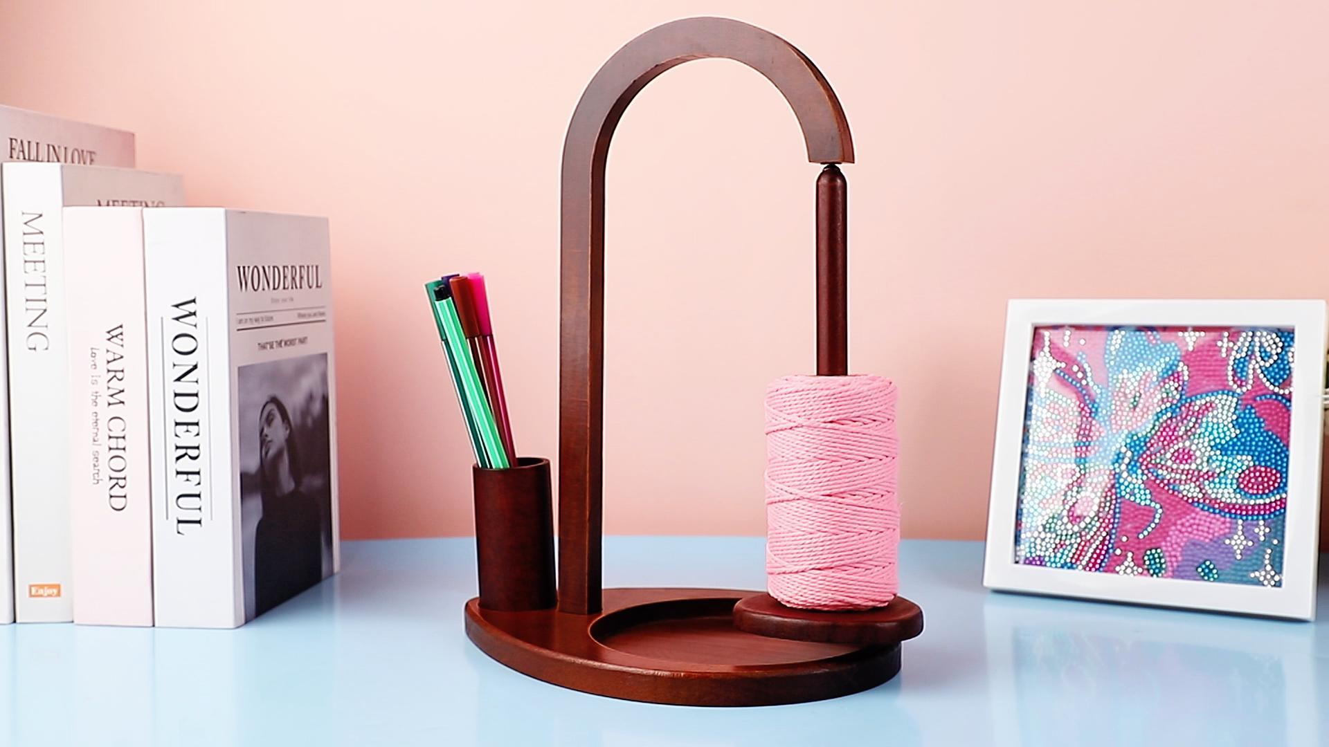 Mega praktisch dieser Wollabwickler! Endlich musst du nicht mehr zwischen Wollkn\u00e4uel jagen und YouTube-H\u00e4keltutorials hin und her wechseln – der integrierte Handyhalter sorgt daf\u00fcr, dass du immer beide H\u00e4nde frei hast. Die magnetische Spindel h\u00e4lt dein Garn sicher fest und dreht sich super leicht, sodass nix verheddert. Noch besser: Der ganze St\u00e4nder hat extra F\u00e4cher f\u00fcr deine H\u00e4kelnadeln, Scheren, Nadeln und F\u00e4den – alles griffbereit und ordentlich verstaut! Aus stabilem Holz gefertigt, steht der Abwickler sicher auf dem Tisch. Mit nem Gewicht von 520g verrutscht nix, aber ist trotzdem leicht genug zum Mitnehmen. F\u00fcr H\u00e4kel-Fans ist das Ding ein absoluter Game-Changer! Kein l\u00e4stiges Suchen mehr nach dem richtigen Werkzeug – alles ist an einem Platz. Und als Geschenk f\u00fcr Strick-Begeisterte? Perfekt! Zeigt einfach, dass du an ihre Leidenschaft denkst. Egal ob Anf\u00e4nger oder Profi – mit diesem multifunktionalen Garnhalter macht H\u00e4keln noch mehr Spa\u00df!