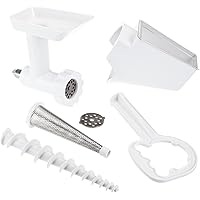 Jetzt wird deine KitchenAid zur kompletten Küchenmaschine! Dieser Fleischwolf-Aufsatz aus hochwertiger Aluminiumlegierung verwandelt deine Küchenmaschine im Handumdrehen in eine professionelle Fleischmühle. Mit dabei sind 4 verschiedene Mahlscheiben für feine, mittlere und grobe Konsistenzen, plus 2 Wurstfüllhörner für deine eigenen Würstchen. Die Ganzmetall-Konstruktion ist nicht nur extrem langlebig, sondern auch gesünder als Plastik-Versionen. Einfach auf den Antriebsnaben deiner KitchenAid stecken, und schon kann's losgehen! Du kannst damit nicht nur Fleisch mahlen, sondern auch Gemüse, Obst, Hartkäse oder sogar Paniermehl herstellen. Der Profi-Tipp: Einfach die Teile vorher kurz ins Gefrierfach legen, dann bleibt alles schön kühl beim Mahlen. Die Reinigung ist super einfach - alle Teile sind abnehmbar und können per Hand gewaschen werden. Die mitgelieferte Bürste macht die Säuberung zum Kinderspiel. Perfekt für alle, die gerne selbst machen: Ob Burger-Patties, Bolognese, hausgemachte Würstchen oder vegetarische Aufstriche - mit diesem Aufsatz wird Kochen zum Erlebnis! Ein absolutes Must-Have für jeden KitchenAid-Besitzer!