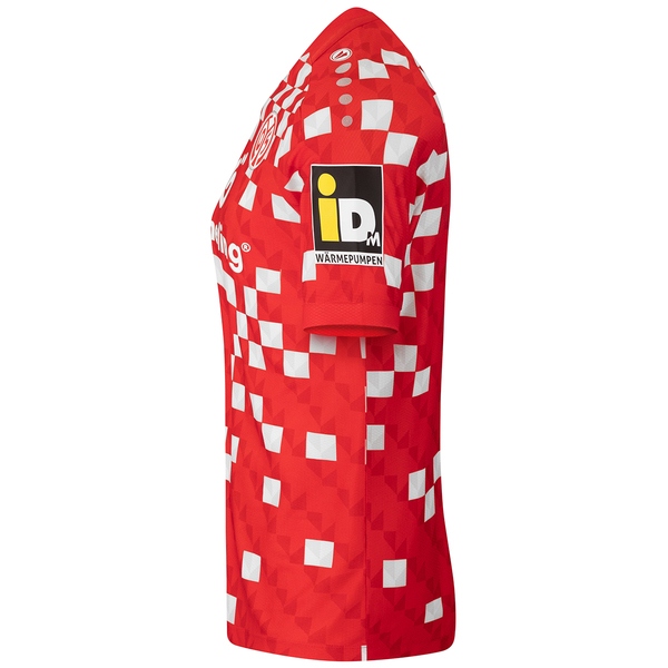 Design-Highlights: • Mainzer Stadtplan als Embossing • Kömmerling Logo auf der Brust • Hochwertiges 3D-Clubwappen aus PU • iDM Logo auf dem Ärmel • Wappen der Stadt Mainz im Nacken • V-Neck Rippkragen
