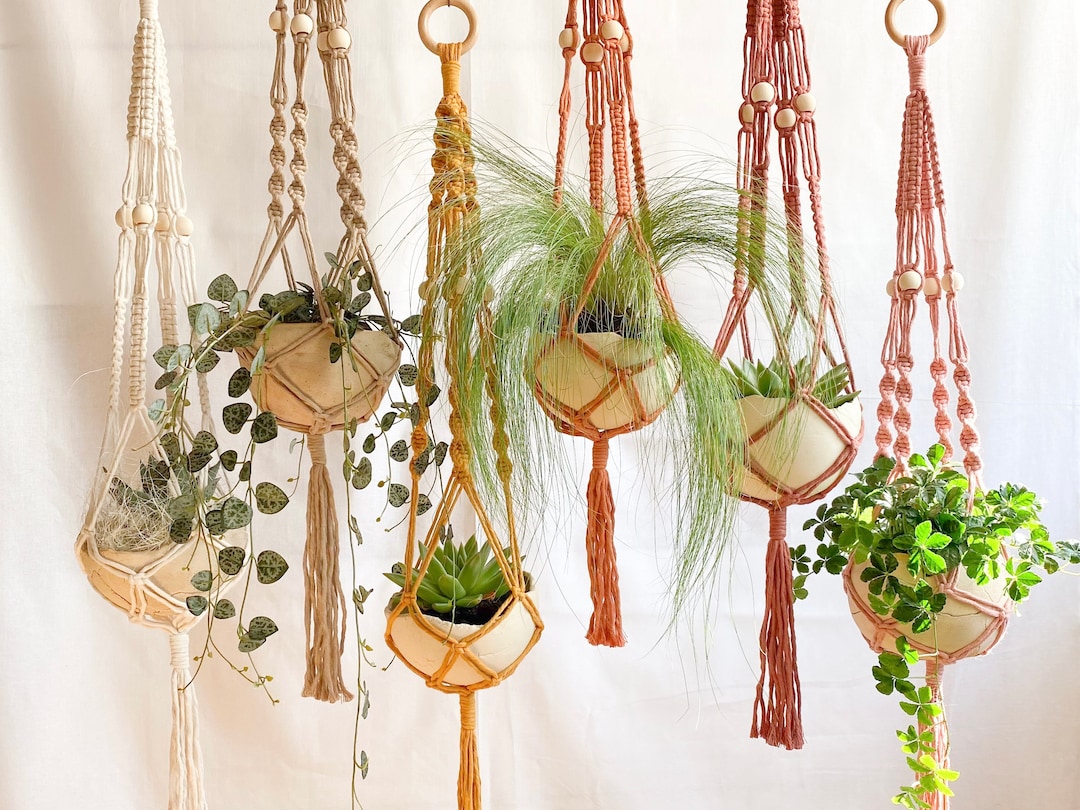 Boho-Charme für deine Pflanzen! Dieses 7-teilige Makramee-Set in Creme bringt natürlichen Style in deine Wohnung. Verschiedene Längen und Designs - mit und ohne Perlen. Einfach an Decke oder Wand befestigen und deine Pflanzen stylish präsentieren.