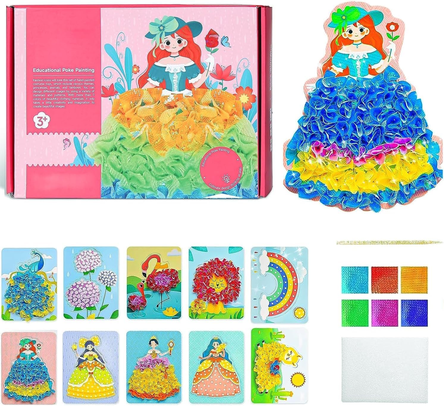 Kinder, macht euch bereit für super kreativen Spaß! Dieses Poke Art Set bringt Stunden voller Beschäftigung und Kreativität. Im Paket sind 10 Stofftafeln, 1 spezieller Kunststift, 1 Schaumstoffunterlage und 600 bunte Stoffbögen enthalten. Einfach die Schaumstoffunterlage unter die Stofftafel legen, den gewünschten Stoff aussuchen und mit dem Stift durch die Löcher in die Tafel stechen. So entstehen wunderschöne 3D-Kunstwerke! Fördert Konzentration, Ästhetik, Kreativität und motorische Fähigkeiten. Aus ungiftigen, geruchsneutralen Materialien - sicher für Kinder. Die fertigen Kunstwerke könnt ihr als Raumdekoration aufstellen oder aufhängen. Verpackt in einer schönen Schachtel - perfekt als Geschenk zu Weihnachten, Geburtstagen oder einfach so. Kreativität war noch nie so einfach und spaßig!