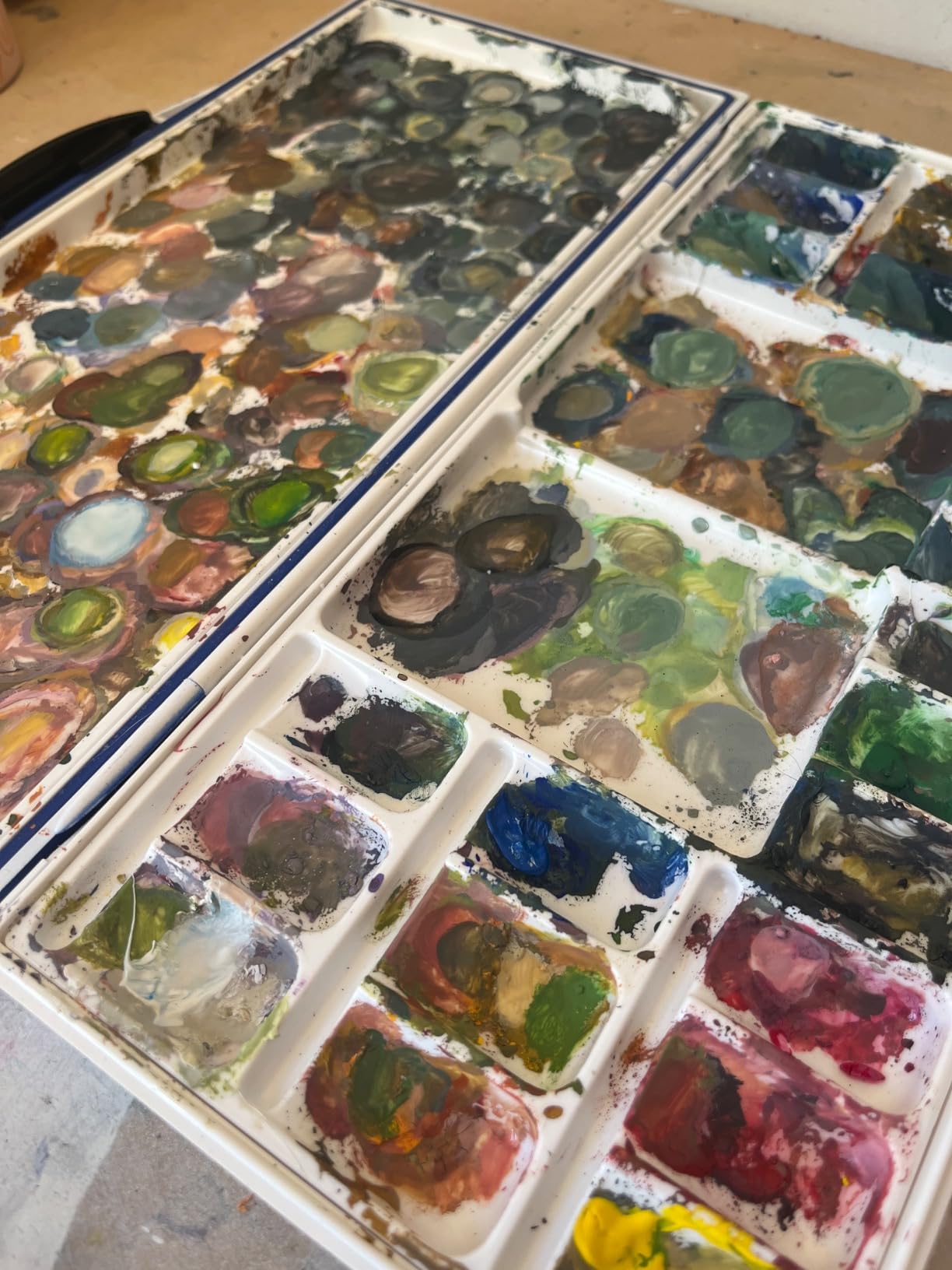 Endlich Schluss mit mühsamem Paletten schrubben! Diese geniale Palette hat eine abziehbare Oberfläche - wenn die Farbe trocken ist, ziehst du sie einfach ab. So easy war Farben mischen noch nie! Mit 32,4 x 22,5 cm hast du genug Platz für alle deine Farben. Der Rand verhindert, dass was daneben läuft. Egal ob Rechts- oder Linkshänder - die Palette funktioniert für alle. Perfekt für Acryl- und Ölfarben. Im Lieferumfang sind sogar vier Stoßstangen für die Ecken dabei, damit sie nicht verrutscht. Malen war noch nie so entspannt!