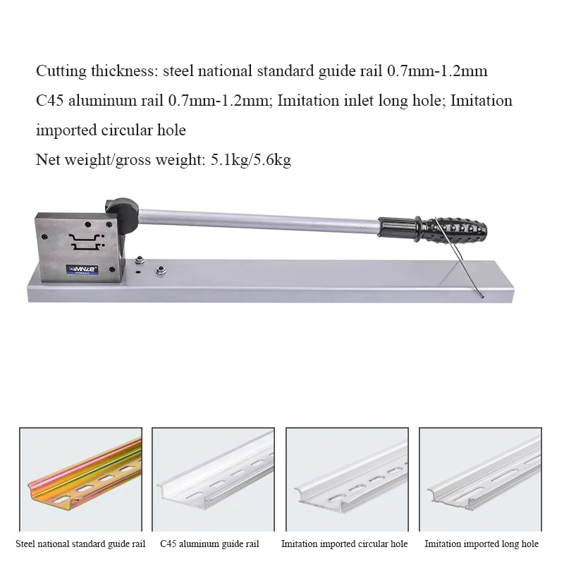 Perfekte Schnitte für deine DIN-Schienen! Dieser manuelle Schienenschneider macht das Schneen von Aluminiumschienen zum Kinderspiel. Mit dem integrierten Lineal stellst du die gewünschte Länge millimetergenau ein - einfach Schieber bewegen, Schraube festdrehen, und schon passt alles. Die Schnittbreite von 13,8-15,7 Zoll und maximale Dicke von 0,8mm decken die meisten Standardschienen ab. Der rutschfeste Gummi-Griff liegt perfekt in der Hand und die Hebelwirkung erfordert kaum Kraftaufwand. Zusammengeklappt nur 25,6x3,3x5,3 Zoll groß und 9,9 Pfund leicht - super transportabel! Aus robustem 40CR, 45# Stahl und A13 Stahl gefertigt, hält dieses Tool ewig. Ideal für Elektriker, Heimwerker und alle, die präzise Schienenschnitte benötigen. Einfach bedienen, sauber schneiden!