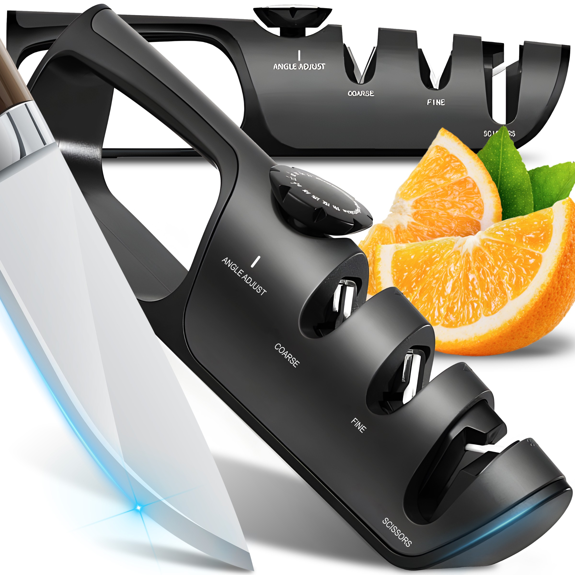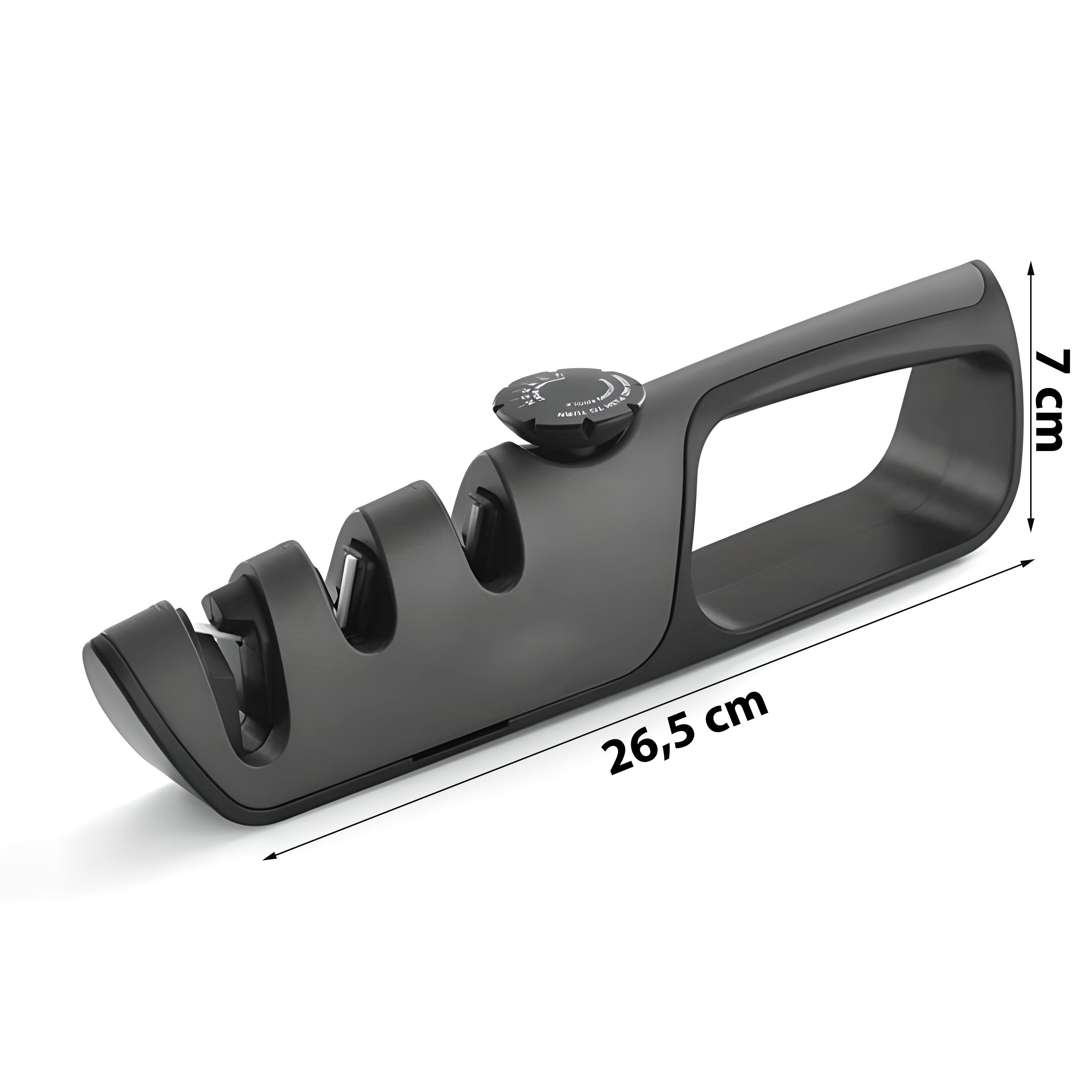 Alter, dieser Profi-Schärfer bringt deine Messer wieder auf Vordermann! Mit 6 verschiedenen Schärfschlitzen für alles - Brotmesser, Sushi-Messer, sogar Scheren. Die Hartlegierungs- und Keramik-Schlitze sind super langlebig. Einfach mit dem Drehrad bedienen - für Links- und Rechtshänder geeignet. Die Anti-Rutsch-Matte sorgt für sicheren Halt. Kompakt genug für die Küchenschublade oder Camping-Ausrüstung. Ob Kochmesser, Taschenmesser oder Jagdmesser - damit werden alle wieder rasiermesserscharf. Einfach ein geniales Teil für alle, die scharfe Messer lieben!