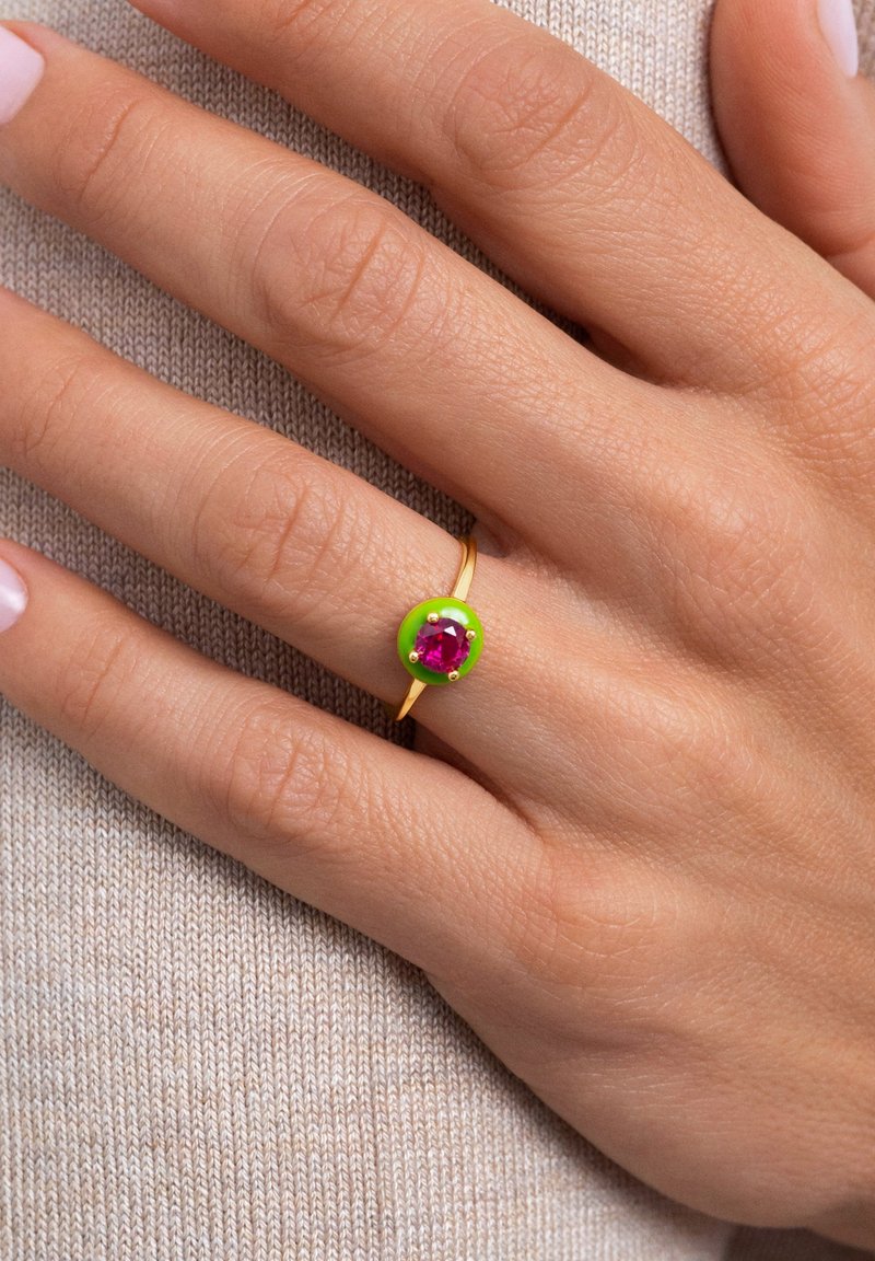 Margaret Ring Messing Vergoldet - Gänseblümchen Design Mit Emaille