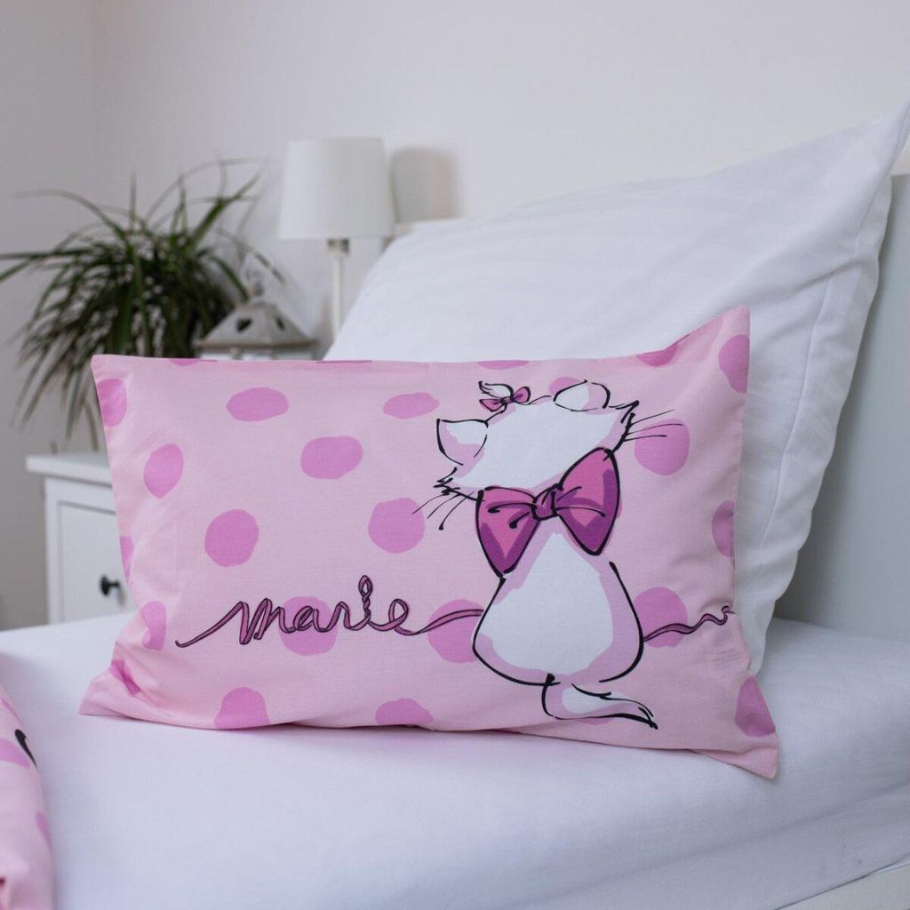 Super süßes Marie Aristocats Bettwäsche-Set für alle kleinen Katzenfans! Das 'Merci' Design in Rosa bringt Disney-Magic ins Kinderzimmer. Perfekt fürs Kinderbett oder Juniorbett - da schläft sich's gleich doppelt gut.