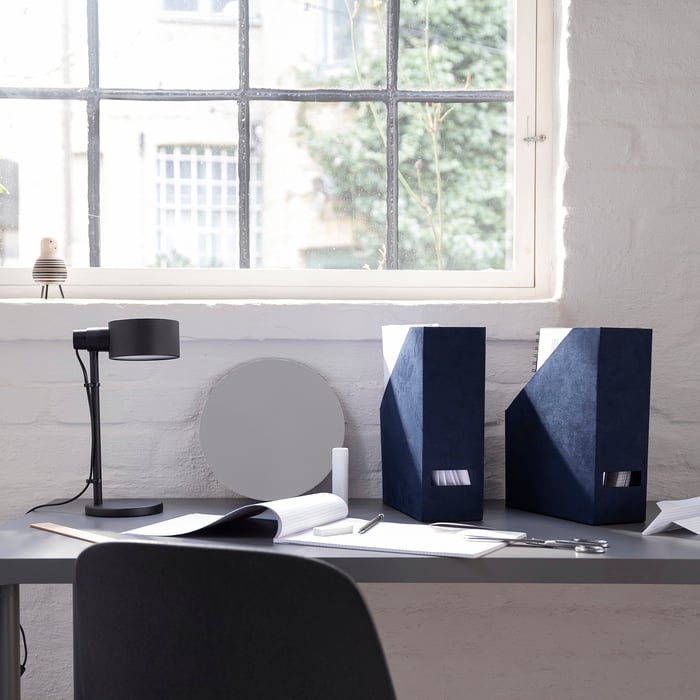 Moin Büro-Fans! Dieser Exacompta MAG-CUBE Zeitschriftenhalter ist der perfekte Organizer für deinen Arbeitsplatz! In schickem Marineblau sieht er nicht nur gut aus, sondern ist auch super praktisch. Mit den Maßen 26,6 x 8,2 x 30,5 cm passt er perfekt für A4 und A4 Maxi Formate. Ob Zeitschriften, Kataloge, Dokumente oder Ordner - hier ist alles sicher und ordentlich verstaut. Das clevere Design sorgt dafür, dass die Grifföse nie blockiert - immer einfacher Zugriff! Aus recyceltem Kunststoff und zertifiziert mit dem Blauen Engel - also auch noch umweltfreundlich! Stabil und mit großem Fassungsvermögen - was will man mehr? Perfekt fürs Büro, Homeoffice oder auch zu Hause. Macht jeden Schreibtisch sofort aufgeräumter! Einfach hinstellen und sich über mehr Ordnung freuen. Wenn du also das Chaos bändigen willst, ist dieser Halter genau das Richtige!