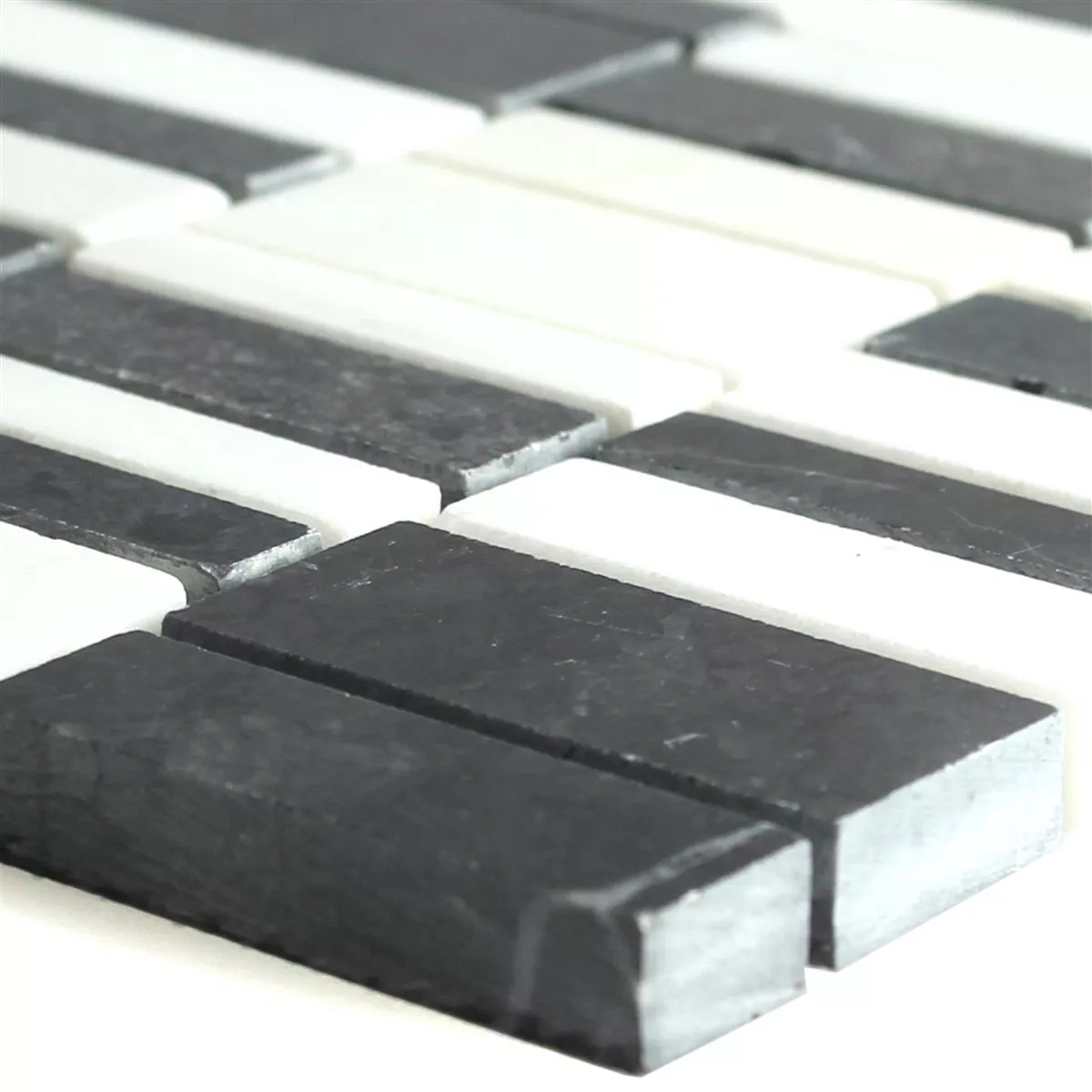 Modernes Flair für deine Wände! Diese edlen Mosaikfliesen im Schwarz-Grau Mix verleihen jedem Raum sofort Charakter. Die 15x50mm großen Stäbchen aus Glas und Marmor sind zu praktischen 30x30cm Matten verklebt - super einfach zu verlegen. Mit 8mm Stärke robust genug für den täglichen Gebrauch. Die Mischung aus matten und glänzenden Oberflächen sorgt für interessante Lichteffekte. Perfekt für Badezimmer, Duschen, Küchen oder Wohnräume - überall dort, wo du was Besonderes möchtest. Eine Matte deckt 0,090m² ab, bei 1,4kg Gewicht pro Matte. Für Innenbereiche und Nassräume bestens geeignet. Verwandele deine Wände in einzigartige Kunstwerke! Einfach verlegen und von der hochwertigen Optik begeistert sein. Design, das beeindruckt!