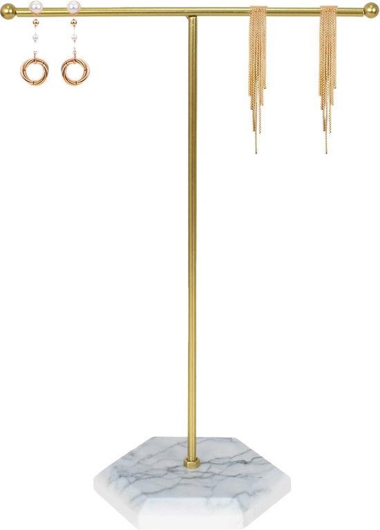 Endlich Ordnung im Schmuckkästchen! Dieser elegante Schmuck-Organizer aus Metall mit Marmor-Optik Tablett ist nicht nur super praktisch, sondern sieht auch noch mega stylisch aus. Mit den Maßen 25,5 x 18,5 cm ist er kompakt genug für jeden Schreibtisch oder Kommode. Das T-förmige Design ist genial - da verhedert sich garantiert keine Kette mehr! Einfach Halsketten, Armbänder, Ohrringe und sogar Uhren oder Schlüssel aufhängen und alles ist immer griffbereit. Die Montage ist kinderleicht - einfach die Metallstange in den Holzsockel schrauben, schon ist er einsatzbereit. Perfekt fürs Zuhause, aber auch für Juweliere oder Boutiquen geeignet. So macht Schmuck organisieren richtig Spaß und deine Lieblingsteile sind immer gut sichtbar und geschützt. Ein tolles Geschenk für alle, die Wert auf Ordnung und Stil legen!