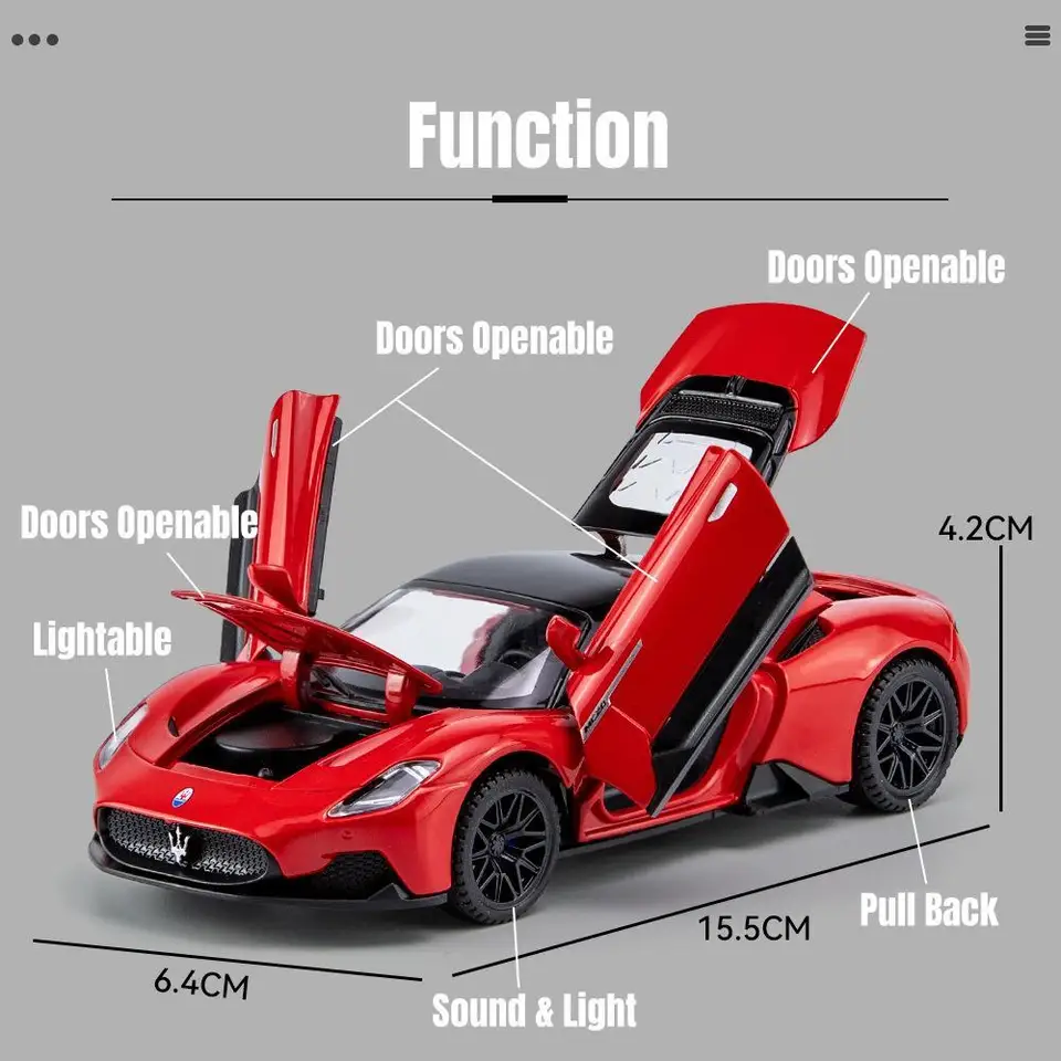 Wow, dieses Maserati MC20 Modellauto ist ja mal der absolute Traum für alle Auto-Fans! Stell dir vor: Du hast einen detailgetreuen Nachbau im Maßstab 1:32 aus hochwertiger Legierung und ABS. Das Besondere? Das Modell hat Sound- und Lichteffekte - wie bei einem echten Sportwagen! Die Türen lassen sich öffnen und innen entdeckst du filigrane Details wie die zarten Sitze, das Armaturenbrett und das realistische Lenkrad. Die Gummireifen sind von bester Qualität und das ganze Modell ist elektrostatisch mit Metalltextur lackiert - einfach premium. Perfekt für Jungs ab 3 Jahren, aber auch für erwachsene Sammler die was Besonderes suchen. Egal ob als Geburtstagsgeschenk, Weihnachtsgeschenk oder für die eigene Vitrine - dieses Modellauto begeistert einfach jeden. Einfach die Oberfläche mit einem weichen Tuch reinigen und das gute Stück bewundern. Damit holst du dir ein Stück Motorsport-Geschichte nach Hause - einfach klasse!