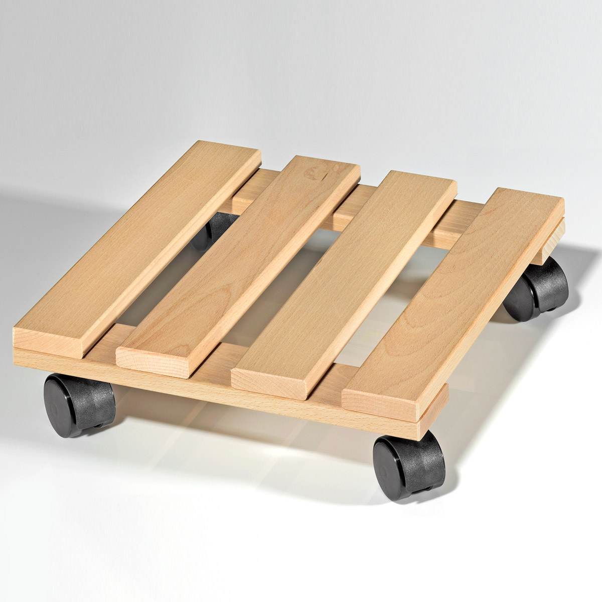 Mobil mit deinen Pflanzen! Dieser massive Pflanzenroller aus geölter Eiche (2cm stark) macht schwere Töpfe und Kübel beweglich. 50x50cm groß, mit 4 Lenkrollen (Ø50mm, 2 mit Feststellern). Tragkraft stolze 200kg - da kannst du wirklich schwere Gewichte draufstellen! Auch für den Außenbereich geeignet. Einfach den Topf drauf, Rollen lösen und verschieben - so einfach kann Pflanzenpflege sein! Perfekt für Terrasse, Balkon oder Wintergarten.