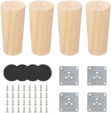 Willst du deinen Möbeln neuen Schwung verleihen? Diese massiven Möbelfüße aus Gummiholz sind die perfekte Lösung! Mit ihrer schräg konischen Form und der matteren Klarlack-Oberfläche sehen sie nicht nur stylisch aus, sondern sind auch super stabil. Jedes Bein trägt bis zu 50 kg und die 20 cm Höhe sind ideal, um mehr Luftzirkulation unter deinen Möbeln zu ermöglichen und die Reinigung zu erleichtern. Das Komplett-Set enthält 4 Holzbeine, 4 verstärkte Montageplatten aus Stahl (2,0 mm stark) und alle notwendigen Schrauben - alles, was du für die Installation brauchst. Einfach die Montageplatten an deinem Möbelstück befestigen, die Beine eindrehen und schon sieht dein Sofa, Schrank, Bett oder Tisch wie neu aus! Die Anti-Rutsch-Pads an den Unterseiten schützen deine Böden vor Kratzern und sorgen für sicheren Stand. Perfekt also für DIY-Projekte, Möbelrestaurierung oder einfach nur, um deinen Möbeln eine persönliche Note zu verleihen. Wegen des natürlichen Holzmaterials können Größe, Muster und Farbe leicht variieren - das macht jedes Bein zu einem Unikat!