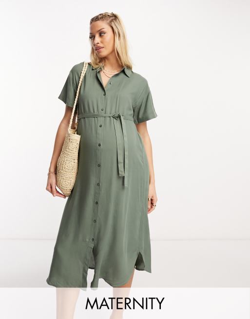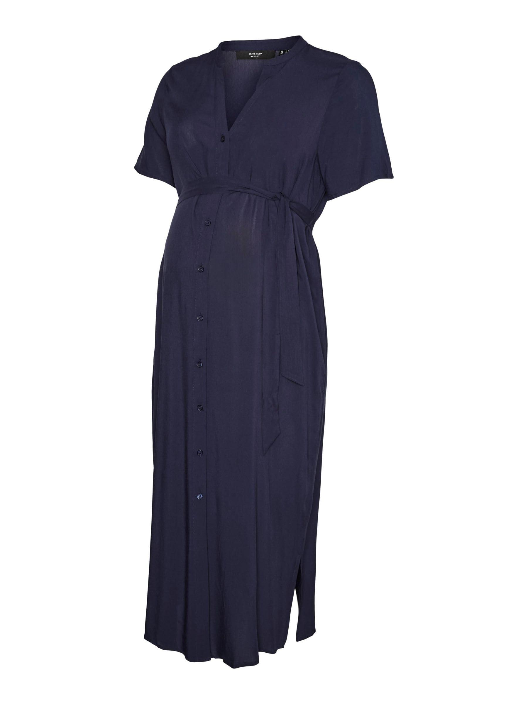 Schwangere aufgepasst! Dieses Vero Moda Maternity Kleid ist einfach perfekt für die wärmeren Tage. Im praktischen Shirt-Kleid-Design mit Mandarin-Kragen und Kurzarm - stylisch und bequem zugleich. Die Knopfleiste vorne macht das Anziehen super easy, und der normale Schnitt gibt deinem Babybauch genug Platz. Aus weichem, atmungsaktivem Material, also auch bei Hitze angenehm zu tragen. Ob im Büro, für einen Stadtbummel oder für ein besonderes Essen - mit diesem Kleid bist du immer perfekt gekleidet. Siehst gut aus und fühlst dich wohl - was will man mehr? Einfach überziehen und den Tag genießen!