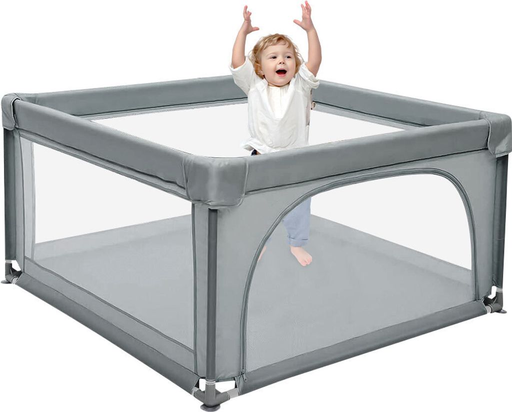 Wow, dieser Laufstall ist wirklich riesig! Mit 120x120cm hat dein Baby mehr als genug Platz zum Spielen, Krabbeln und erste Schritte wagen. Die 1cm dicke Schaumstoffmatte macht's super bequem, und das atmungsaktive Netz an allen vier Seiten sorgt für beste Belüftung und Sicht. Du kannst dein Kleines immer im Blick behalten, während es sicher spielt. Besonders praktisch: Die Reißverschlusstür - so kommt dein Baby nicht alleine raus, aber du kommst easy rein und raus. Die vier Saugnäpfe am Boden verhindern lästiges Verrutschen, und die 68cm Höhe sind perfekt, damit dein Kind nicht so einfach drüberklettern kann. Wenn mal was daneben geht - kein Problem! Die wasserfeste Oberfläche lässt sich einfach mit einem feuchten Tuch abwischen. Und wenn du mal kochen oder aufräumen musst, weißt du dein Kind sicher aufgehoben. Nach Gebrauch klappst du den Laufstall einfach zusammen und verstaut ihn platzsparend. Ein echter Lebensretter für gestresste Eltern!