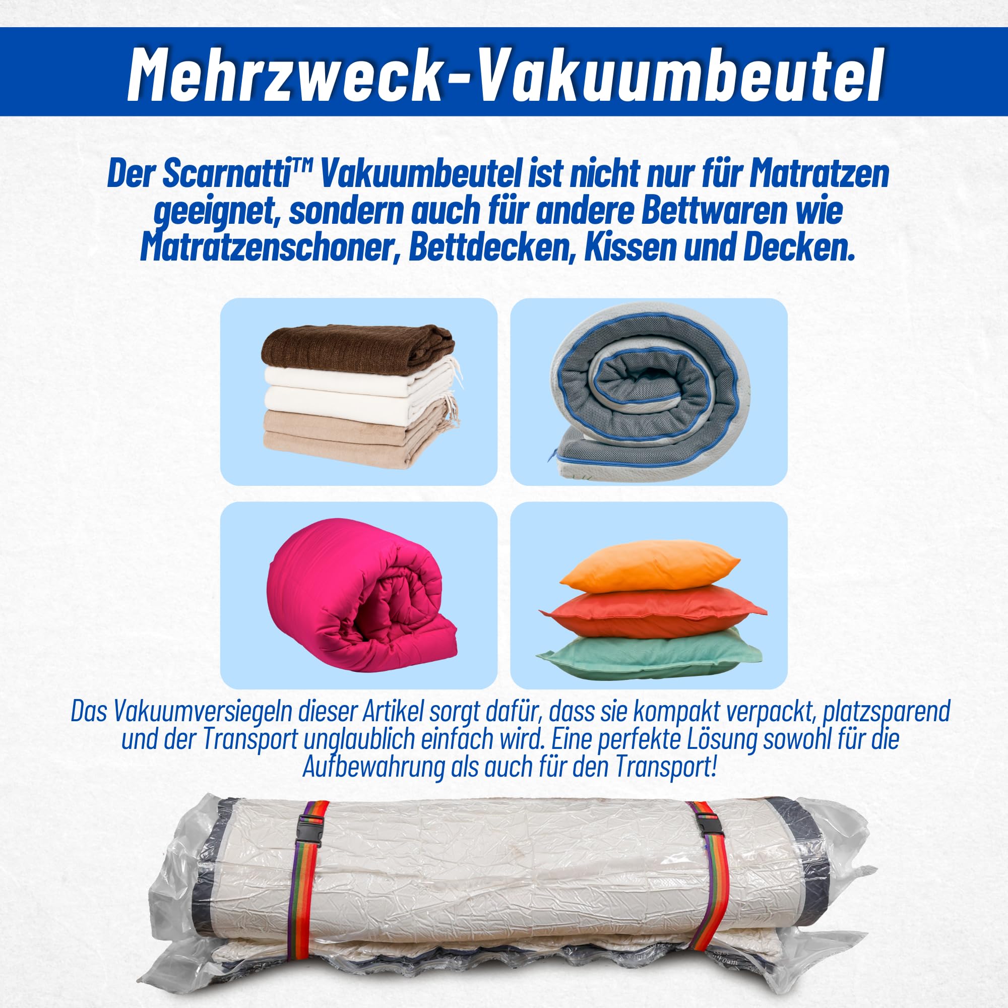 Ein Umzug steht an und du fragst dich, wie du die sperrige Matratze transportieren sollst? Dieser Vakuumbeutel ist die Antwort! Einfach die Matratze rein, mit dem Staubsauger die Luft rausziehen, zusammenrollen und mit den Gurten sichern - schon ist aus der großen Matratze ein handliches Paket geworden. Perfekt für den Keller, den Umzug oder die Rückgabe. Einfach genial!