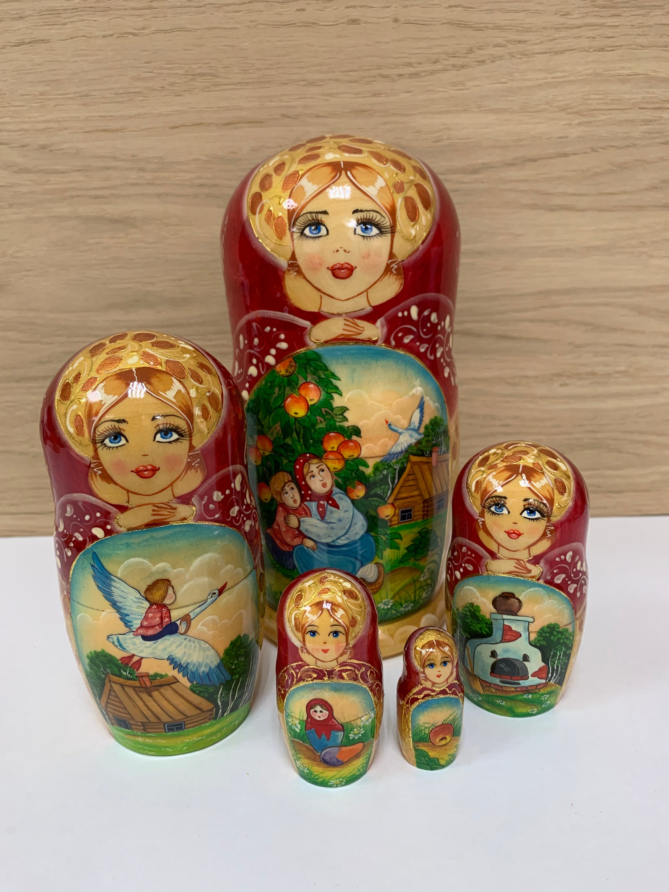 Der Klassiker fürs Zuhause! Dieses 5-teilige Set mit traditionellen russischen Matryoshka-Puppen bringt Charme und Farbe in deine Wohnung. Jede Puppe ist aus natürlichem Holz gefertigt und liebevoll von Hand bemalt - mit bezaubernden Mustern, die Groß und Klein begeistern. Die größte Puppe misst 11 cm, die kleinste versteckt sich ganz innen. Umweltfreundliche Farben machen die Puppen auch für Kinder unbedenklich. Super als Dekoration fürs Regal, als Spielzeug oder als originelles Geschenk für Freunde und Familie. Die robuste Verarbeitung garantiert, dass die Puppen lange Freude bereiten. Mach dir oder anderen eine Freude mit diesem Stück russischer Kultur - immer wieder faszinierend, wenn eine Puppe nach der anderen zum Vorschein kommt!
