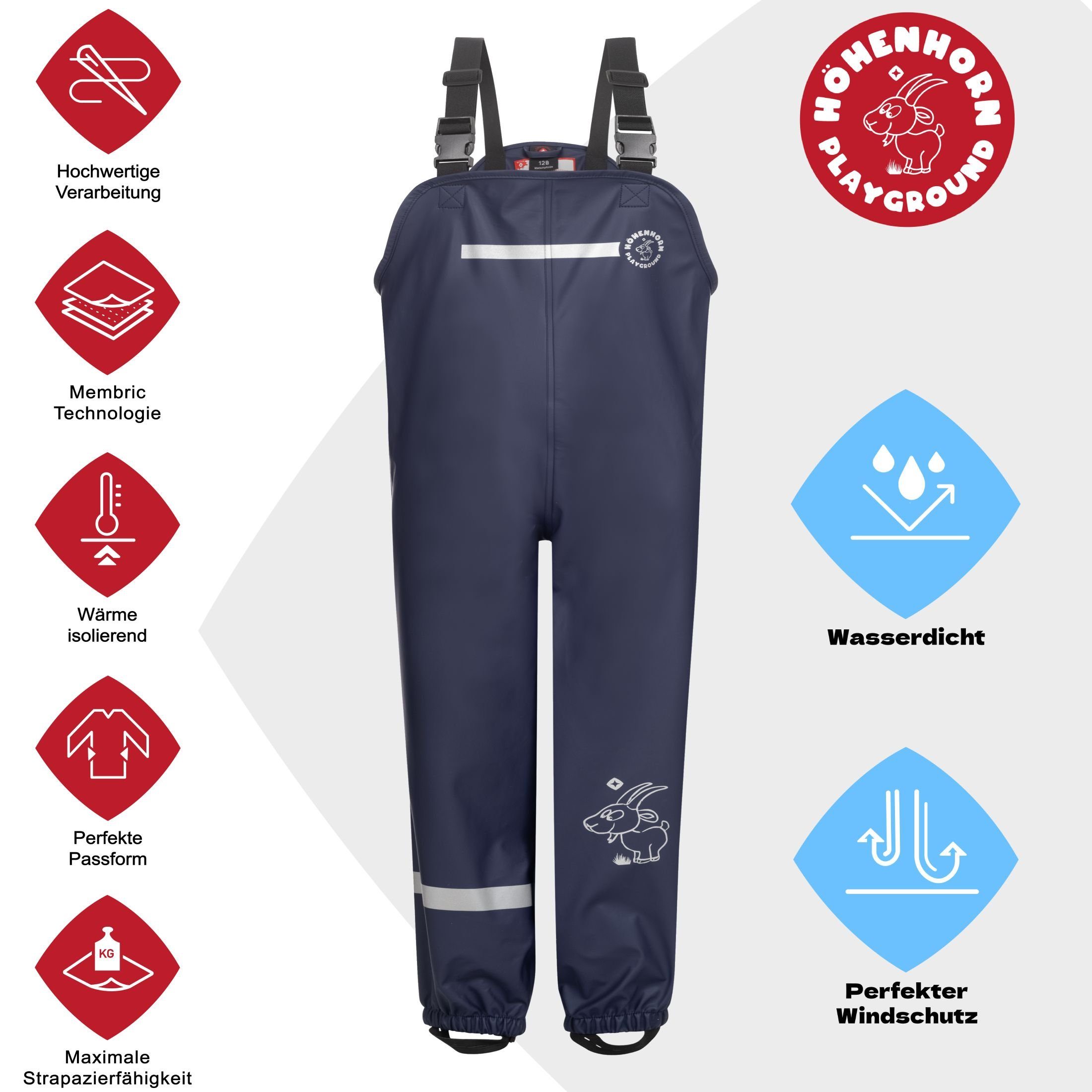 Matschwetter? Kein Problem mit dieser praktischen Regenhose! Für Jungen und Mädchen gleichermaßen geeignet, in verschiedenen Größen von 92 bis 128. Aus leichtem, atmungsaktivem Material das sich super angenehm trägt - volle Bewegungsfreiheit garantiert! Wind- und wasserabweisend verarbeitet, aber nicht schwer oder klobig. Die Reflektorstreifen sorgen für bessere Sichtbarkeit bei Dämmerung - Sicherheit geht vor! Mit verstellbaren Trägern für individuelle Passform, einfach über normale Hosen ziehen. Perfekt für Outdoor-Aktivitäten, Waldspaziergänge oder Gartenarbeit - ob bei Regen oder auf matschigen Wegen. Die neutralen Farben passen zu allem im Kleiderschrank, kombinierbar mit Regenjacken oder Fleecejacken. Einfach mit feuchtem Tuch abwischen oder bei 30°C Handwäsche - trocknet schnell und behält ihre wasserabweisenden Eigenschaften. Dein Kind kann nach Herzenslust plantschen - und bleibt trocken dabei!