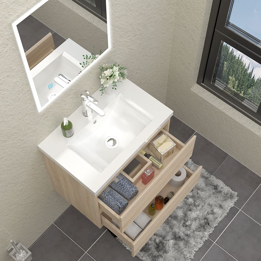 Modernes Badezimmer? Kein Problem mit diesem HAPAOSO Badunterschrank! In dezentem Eiche Matt Design und 60cm Breite findet er in jedem Bad Platz. Das Mineralguss-Becken (61x40cm) ist praktisch und pflegeleicht, während der Unterschrank aus feuchtigkeitsbeständiger MDF-Platte gefertigt ist. Die beiden Türen mit Soft-Close-Funktion schließen geräuschlos und das grifflose Design sieht einfach stylisch aus. Mit 59cm Breite, 38,5cm Tiefe und 40cm Höhe bietet der Unterschrank genug Stauraum für all deine Badezimmer-Utensilien. Die Selbstmontage ist dank nummerierter Teile und ausführlicher Anleitung ein Kinderspiel - wie beim Jenga-Spielen! Achtung: Wasserhahn, Ablaufventil und Spiegel sind nicht im Lieferumfang enthalten. Der Artikel wird in zwei Paketen geliefert - also keine Sorge, wenn nicht alles auf einmal ankommt. Mach dein Bad zum Wohlfühl-Ort!