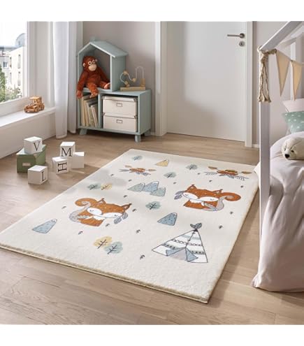 Dieser niedliche Kinderteppich mit den süßen Fuchs- und Bär-Motiven bringt Freude in jedes Kinderzimmer! Der besondere Clou: Der Handkonturenschnitt gibt den Motiven eine plastische, dreidimensionale Optik - das sieht nicht nur super aus, sondern fühlt sich auch toll an! Hergestellt aus 100% Polypropylen ist der Teppich besonders pflegeleicht - einfach saugen und Flecken lassen sich leicht entfernen. Mit einer Gesamthöhe von ca. 13mm ist er schön weich und gemütlich zum Daraufsitzen und Spielen. Besonders beruhigend für Eltern: Der Teppich ist schadstoffgeprüft nach Öko-Tex Standard 100 und absolut unbedenklich für dein Kind. Er ist parkett- und laminatschonend und sogar für Fußbodenheizung geeignet! In 5 verschiedenen Größen erhältlich - für jedes Kinderzimmer die passende Dimension. Die lebhaften Farben in Grau und Beige passen super in viele Einrichtungsstile. Ob zum Spielen, Toben oder Kuscheln - dieser Teppich ist der perfekte Begleiter für die Kindheit. Hol dir dieses qualitativ hochwertige Stück und mach das Kinderzimmer deines Lieblings noch gemütlicher!