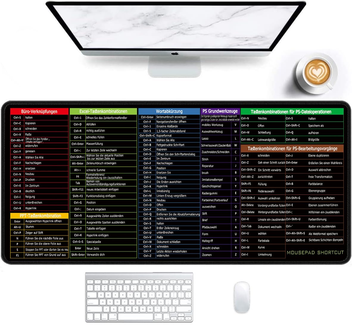 Du arbeitest viel mit Excel und vergisst ständig die Tastenkombinationen? Dieses geniale Mauspad hat alle wichtigen Excel-Shortcuts direkt vor deinen Augen! Mit 300x250x3 mm perfekt für Schreibtisch und Homeoffice. Aus hochwertigem Polyester mit doppelt vernähter Kante - super langlebig und rutschfest durch die Naturkautschuk-Unterseite. Die Oberfläche gibt deiner Maus perfekten Halt für präzises Arbeiten. Ob Formeln, Formatierungen oder Navigation - alles ist übersichtlich aufgedruckt. Sogar wasserdicht ist das Teil noch dazu - kein Problem also, wenn mal der Kaffee umkippt. Perfekt für Excel-Einsteiger, die schnell lernen wollen, aber auch für Profis, die ab und zu mal nachschauen müssen. Das Mousepad ist leicht und faltbar - ideal auch für unterwegs. Mach deine Arbeit effizienter und spar dir lästiges Suchen in Menüs. Deine Produktivität wird sich sofort verbessern! Ein Must-Have für jeden, der regelmäßig mit Excel arbeitet - ob im Büro, im Homeoffice oder im Studium.