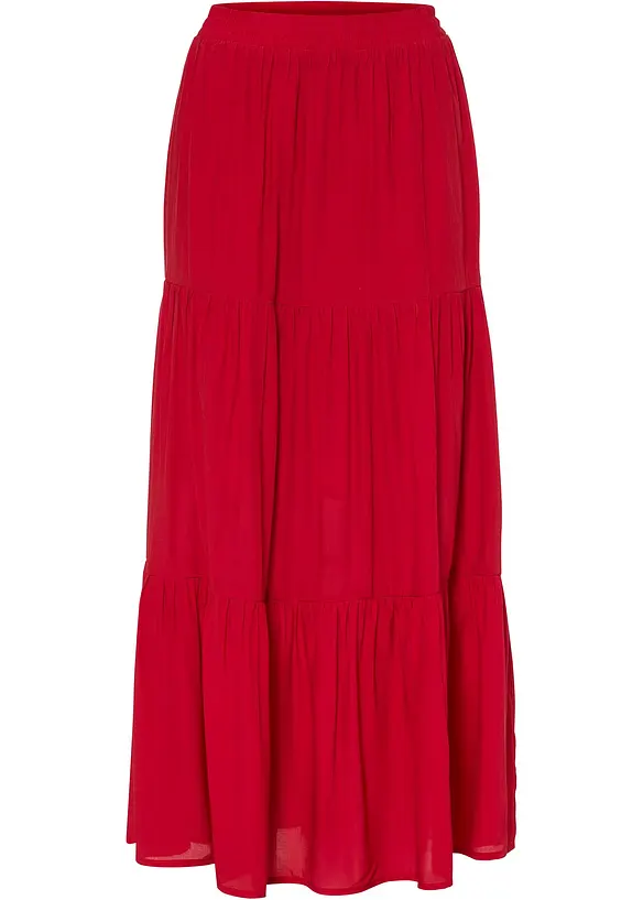 Sommer, Sonne, Volants! Dieser CECIL Maxi-Rock ist einfach traumhaft schön. Die weichen Volants geben dem Rock einen romantischen, luftigen Look - perfekt für warme Tage! Aus 100% Viskose - super weich und angenehm auf der Haut. Der elastische Bund mit Tunnelzug sorgt für perfekten Sitz und maximalen Komfort. Du musst dich nicht zwischen Schönheit und Bequemlichkeit entscheiden - dieser Rock bietet beides! Der lange Schnitt ist elegant und vielseitig kombinierbar. Ob mit T-Shirt, Bluse oder Top - dieser Rock macht jedes Outfit sommerlich leicht. Perfekt für Strand, Stadt, Date oder Festival - einfach überall, wo du dich wohl fühlen willst. Die Viskose-Qualität ist atmungsaktiv und fällt wunderschön. Einfach anziehen und strahlen! Dieser Rock wird schnell dein neuer Liebling werden. Bestell ihn jetzt und genieße den Sommer in Style! Echt empfehlenswert für alle, die feminine, bequeme Kleidung lieben.