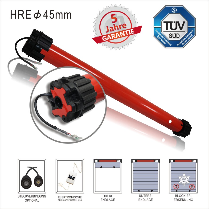 Professioneller Rohrmotor von heicko mit 20 Nm Drehmoment für deine Rollläden oder Jalousien! Mit mechanisch einstellbaren Endlagen - einfach und präzise einzustellen. Der Motor hat 45 mm Durchmesser und ist für 60 mm 8-Kantwellen geeignet (Adapter bereits vormontiert). Wartungsfrei mit thermischem Überlastungsschutz und leise laufendem Getriebe. Im Lieferumfang: Motor, Adapter-Set, Antriebslager, Splint und Einstellwerkzeug. Einfache Installation - perfekt für Heimwerker und Profis. Mach deine Rollläden smart und bequem!