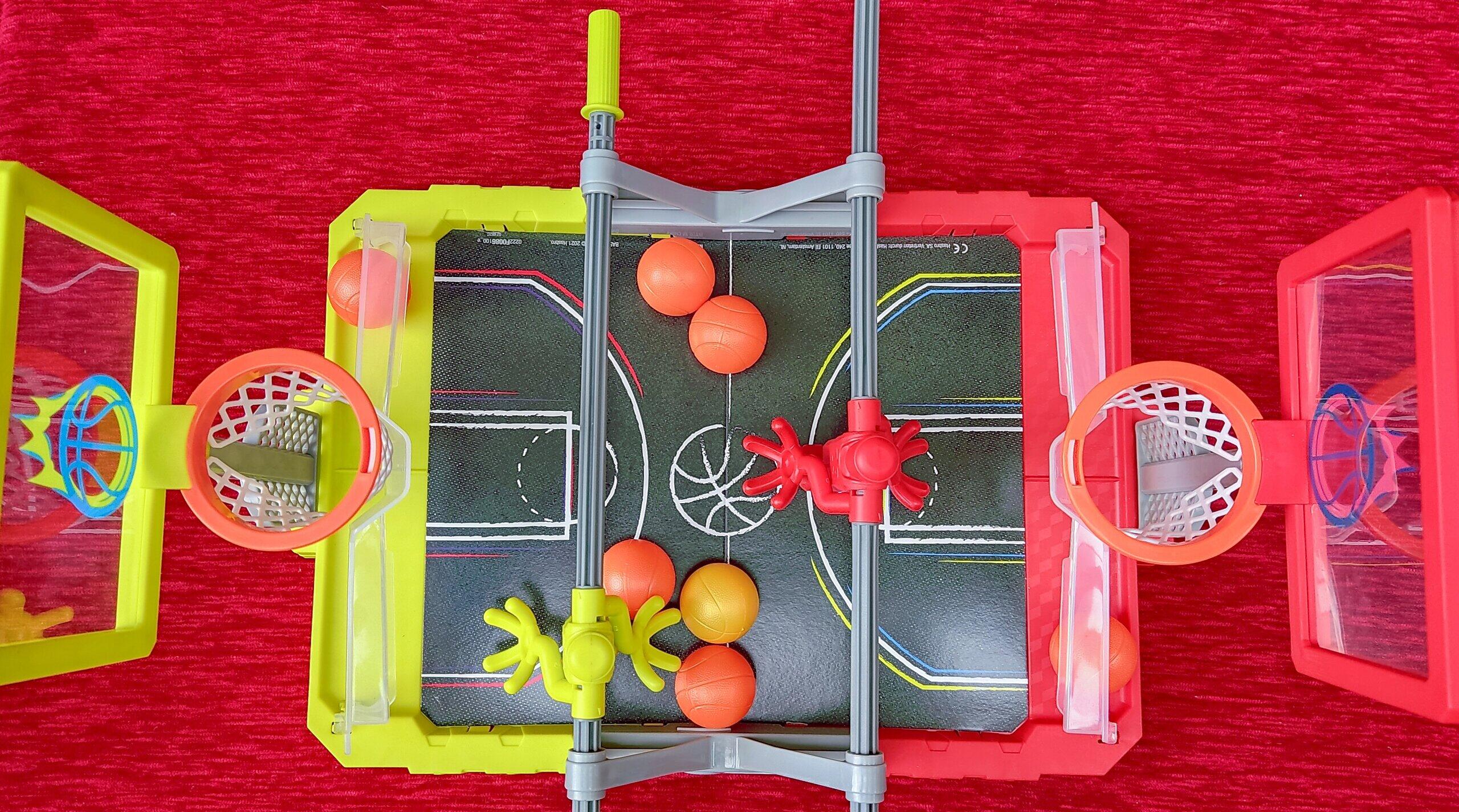 Baskettack ist einfach genial! Die mega Kombi aus Tischkicker und Basketball. Schnapp dir mit den Griffen die Bälle und wirf sie in den gegnerischen Korb. Orange Bälle zählen 1 Punkt, der goldene Ball sogar 2! Wer zuerst 5 Punkte hat, gewinnt. Super spannende Kopf-an-Kopf-Duelle für 2 Spieler ab 8 Jahren. Fördert Geschicklichkeit, Timing und macht einfach irre Spaß! Perfekt für Kindergeburtstage, Familienabende oder einfach so. Leicht aufzubauen und sofort spielbereit. Ein absoluter Hit für alle, die Action und Spielspaß lieben!