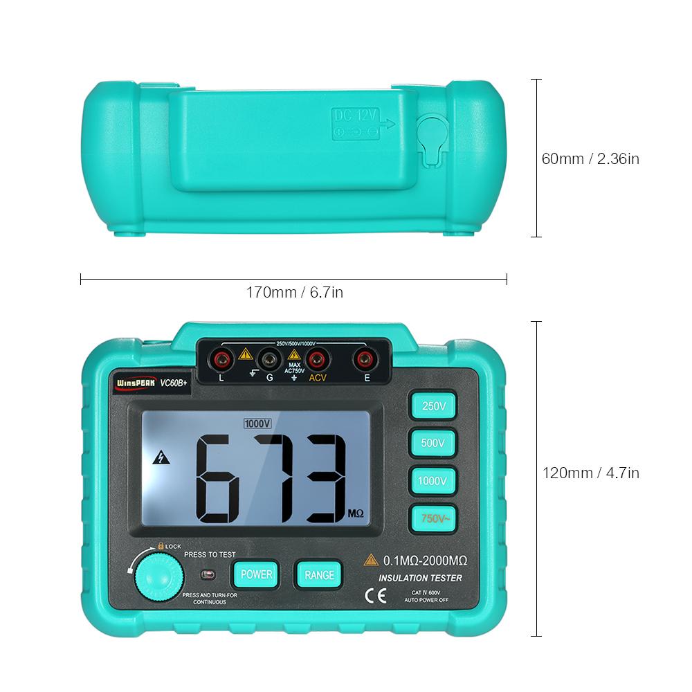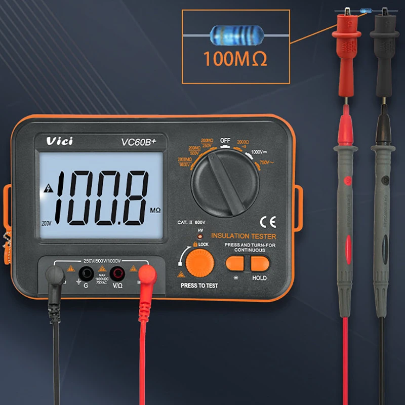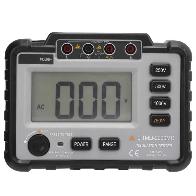 Professionelles Messgerät für Elektriker und Servicetechniker! Der VC60B misst Isolationswiderstände von 200 MΩ bis 2 GΩ mit drei Prüfspannungen: 250V, 500V oder 1000V. Das große LCD-Display zeigt bis 1999 an und die Data-Hold-Funktion friert die Werte ein. Super robust und zuverlässig - hält auch Kurzschlüsse und Restspannung aus. Perfekt für die Metallurgie, Chemie oder Energiebranche. Läuft mit 6 AA Batterien, also mobil einsetzbar. Ob Wartung, Reparatur oder Installation - mit diesem Messgerät bist du auf der sicheren Seite. Einfach die richtige Spannung wählen, messen und die Werte sicher ablesen. Qualität die Profis vertrauen - bestell das Teil und meistere jede Elektro-Messung!