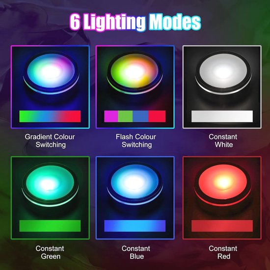 Mach deine Dekorationen zum echten Hingucker! Diese LED-Lichtbasis verwandelt Kristallfiguren, Glasobjekte und 3D-Fotos in strahlende Kunstwerke. Maße: 8,5x2,3cm - kompakt aber wirkungsvoll. Mit 2 LED-Perlen die in 7 verschiedenen Farben wechseln - einfach magisch! Angetrieben von 3 AAA-Batterien (nicht im Lieferumfang). Aus robustem Kunststoff gebaut für lange Lebensdauer. Einfach das Dekorationsstück darauf stellen, einschalten und staunen! Perfekt für Vitrinen, Regale oder als besondere Beleuchtung. Ob für Hochzeitsdekoration, Geburtstagsgeschenk oder einfach zur Verschönerung der Wohnung - diese Lichtbasis bringt jeden Gegenstand zum Strahlen. Einfach bedienen und sofort beeindruckende Lichteffekte genießen!