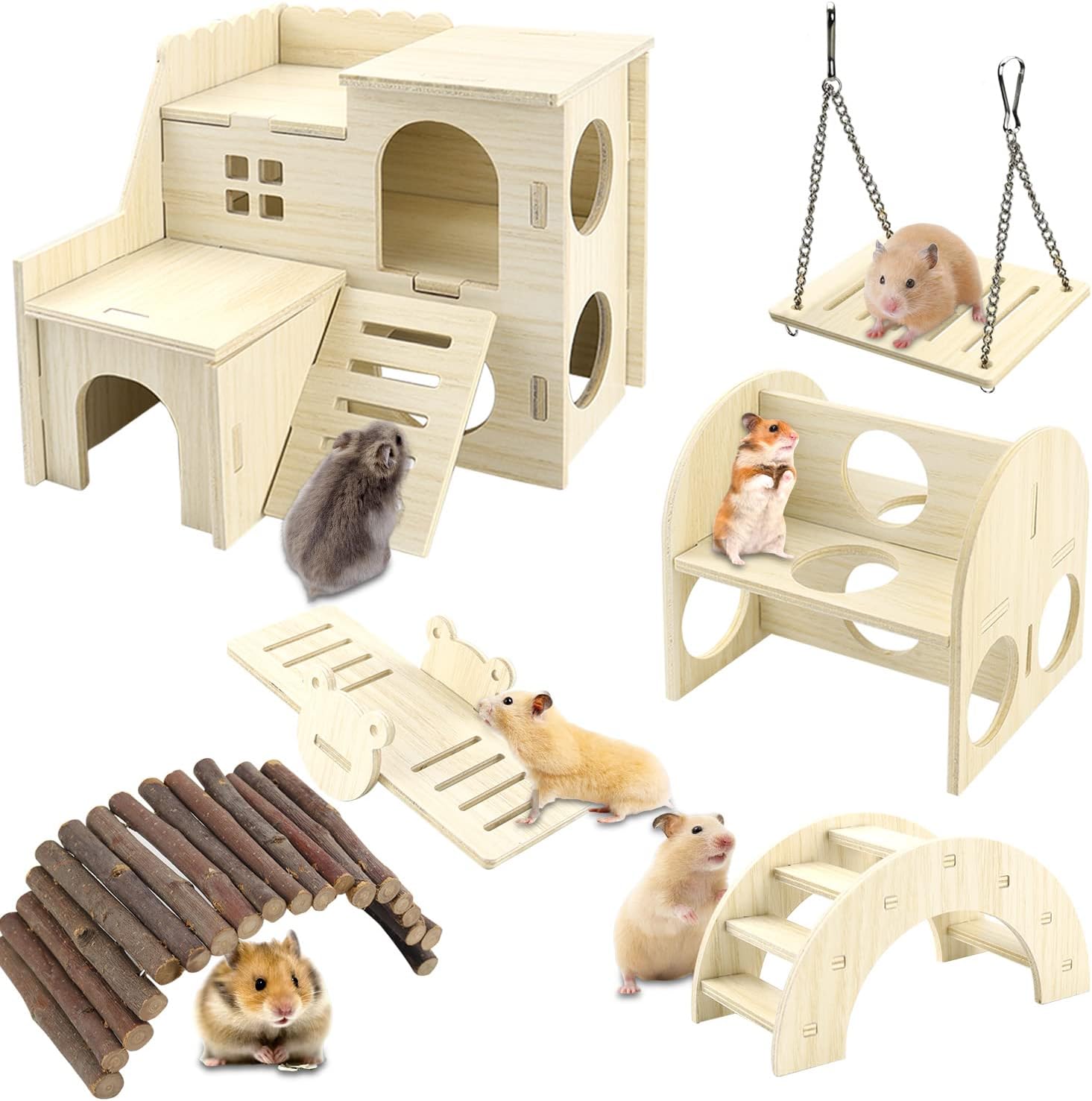 Kleine Nagetier-Freunde werden dieses Haus lieben! 🐹 Aus natürlichem Holz - sicher und geruchlos! 2-stöckig mit Treppen und 2 Eingängen! Maße: 19x15x15cm - perfekt für Hamster, Mäuse oder Meerschweinchen! Oberfläche super glatt - keine Verletzungsgefahr! Wasserdichte Beschichtung - schimmelt nicht! Einfach zusammenzubauen - kein Werkzeug nötig! Mit süßem Bärenmuster auf dem Dach! Perfekt zum Schlafen, Verstecken und Spielen! Also, verwöhne dein kleines Haustier mit diesem tollen Zuhause! Es wird sich darin pudelwohl fühlen! Dein Nager wird dich lieben! ❤️