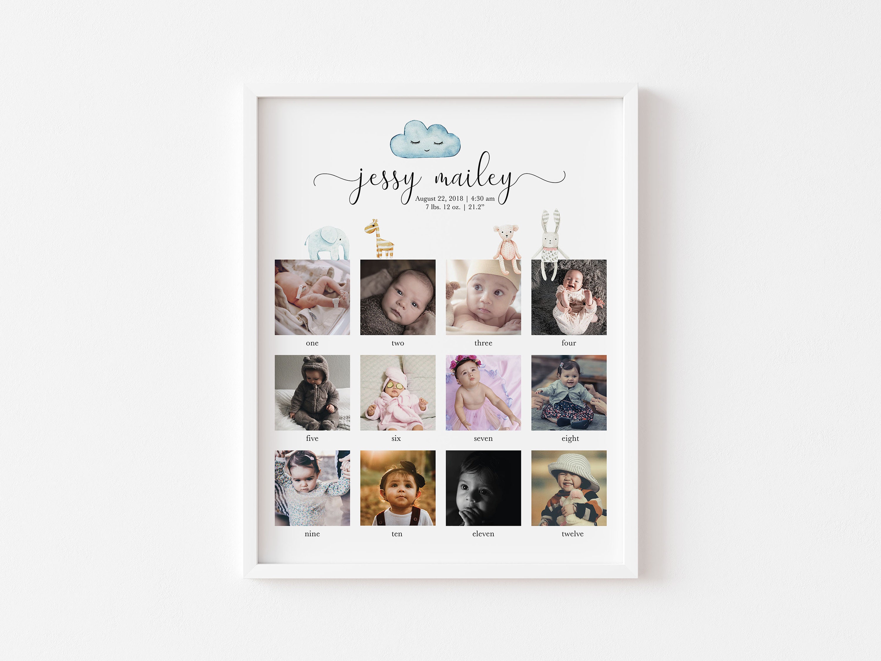 Hominas Baby Bilderrahmen Mein Erstes Jahr - 12 Monate Fotorahmen Collage Weiß