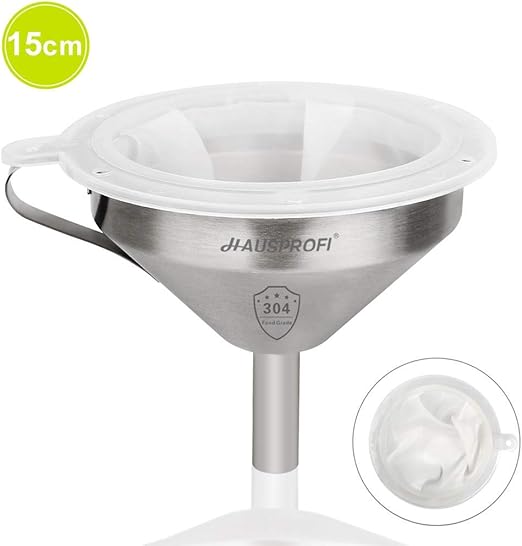 So ein praktisches Teil für die Küche! Dieser Meisha Trichter aus Edelstahl in schickem Roségold sieht nicht nur gut aus, sondern ist auch super funktionell. Mit abnehmbarem Sieb - perfekt zum Filtern von Pulvern oder für Flüssigkeiten. Die große Öffnung verstopft nicht so schnell, und der Luftauslass verhindert lästiges Gluckern. Aus spülmaschinenfestem Edelstahl - einfach reinigen und wieder verwenden. Mit praktischem Aufhängegriff - platzsparend in der Schublade oder an einem Haken. Hitzebeständig - auch für heiße Flüssigkeiten geeignet. Ob für Öl, Wein, Essig oder Marmelade - dieser Trichter macht das Umfüllen zum Kinderspiel. Maße: 10,7 cm Durchmesser, 10,5 cm hoch. Inklusive Sieb - alles dabei für perfektes Umfüllen ohne Kleckern!