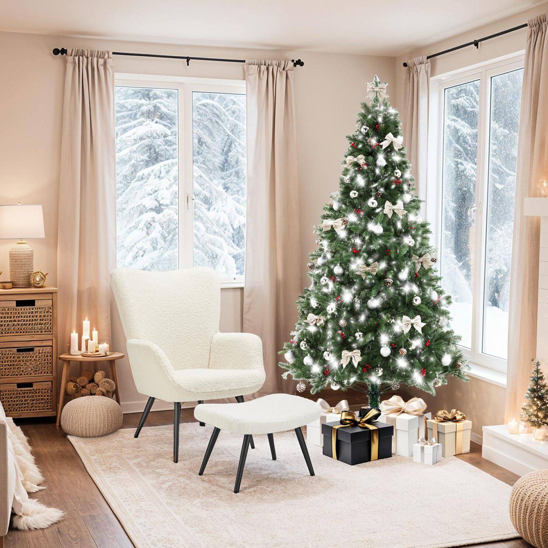 Dieser Menz Weihnachtsbaum sieht so echt aus, dass deine Gäste zweimal hinschauen werden! Mit 180cm Höhe und 115cm Durchmesser ist er die perfekte Größe für die meisten Wohnzimmer. Die 1050 Spitzen aus 80% PVC und 20% PE sorgen für eine unglaublich dichte und natürliche Optik - die Spritzguss-Spitzen machen den Unterschied zu billigen Bäumen sofort sichtbar. Der stabile Metallständer mit vier Beinen (64cm Durchmesser) ist werkzeuglos montiert und hält bis zu 90kg aus - absolut kippsicher! Das Beste: Dieser Baum ist eine nachhaltige Investition für viele Weihnachtsfeste. Kein lästiges Nadeln, kein jährliches Kaufen - einfach Jahr für Jahr aufbauen und sich an der vollen Pracht erfreuen. Der Aufbau geht ratzfatz und du hast Jahr für Jahr denselben wunderschönen Baum, der Erinnerungen bewahrt und dein Zuhause in weihnachtliche Stimmung taucht. Ein Christbaum, der wirklich fürs Leben gemacht ist!